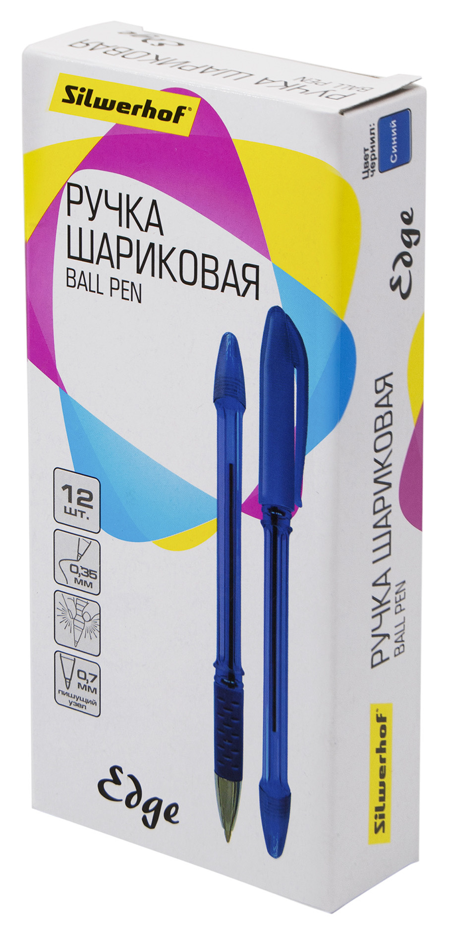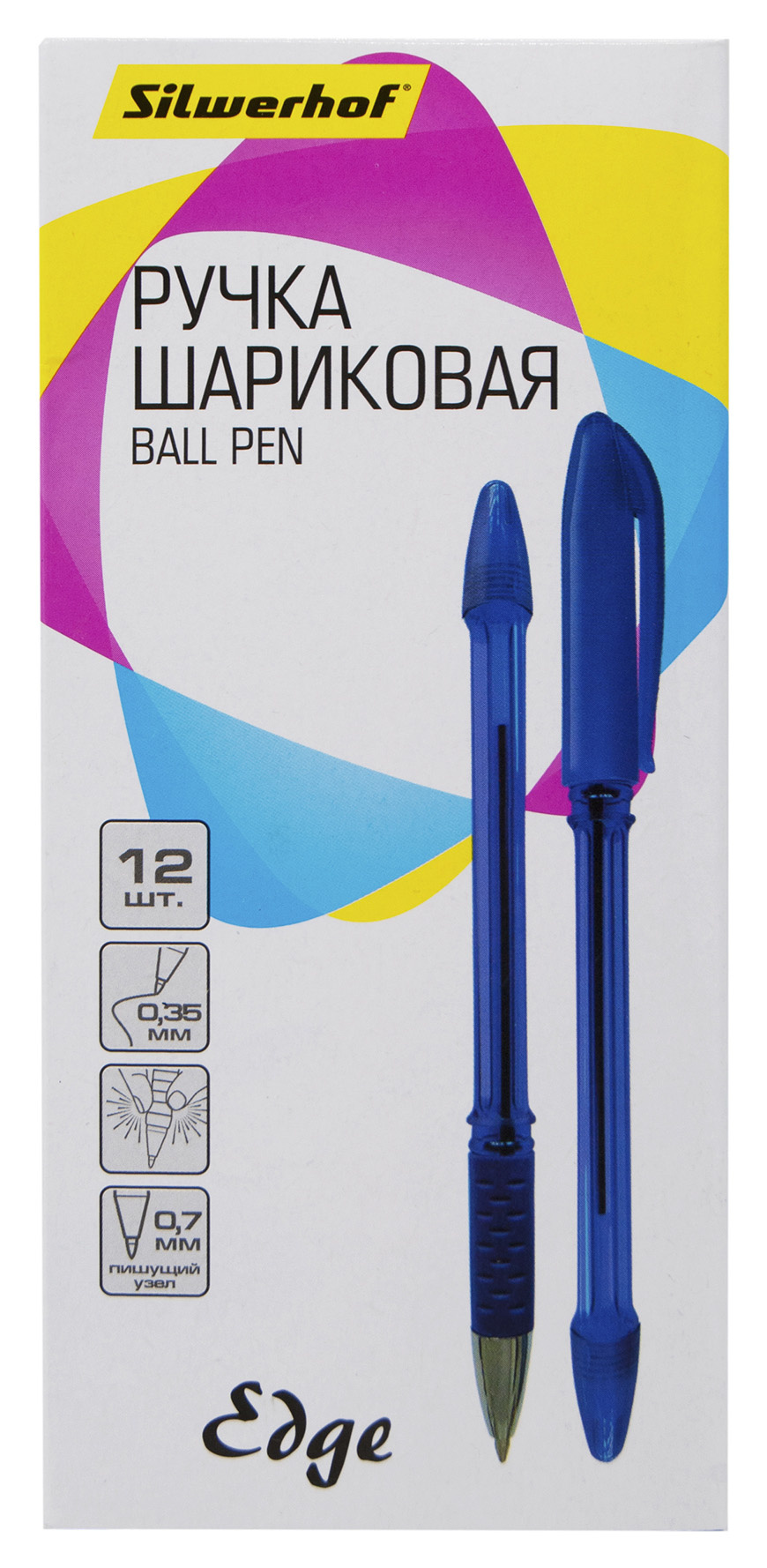 Ручка шариков. Silwerhof Edge d=0.7мм син. черн. сменный стержень линия 0.35мм резин. манжета серебристый