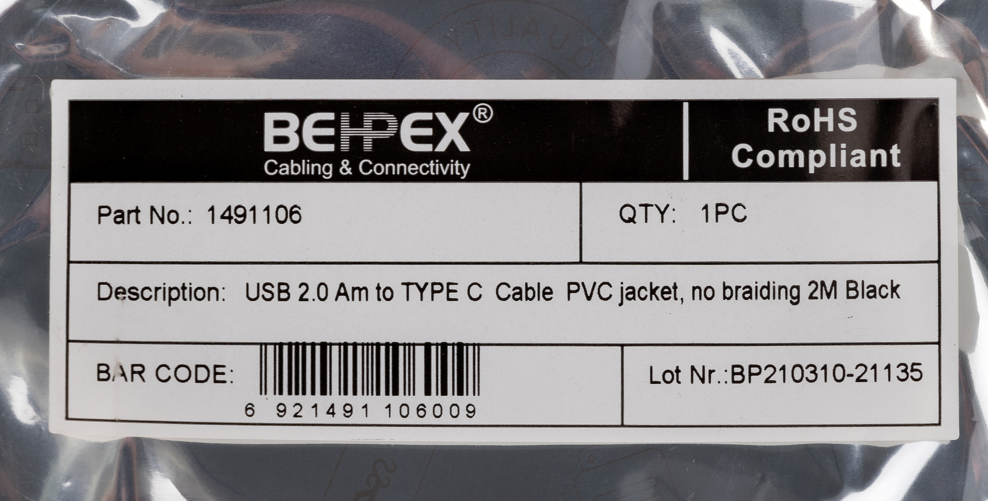 - Разъем для подключения к мобильному устройствуUSB Type-C (m)