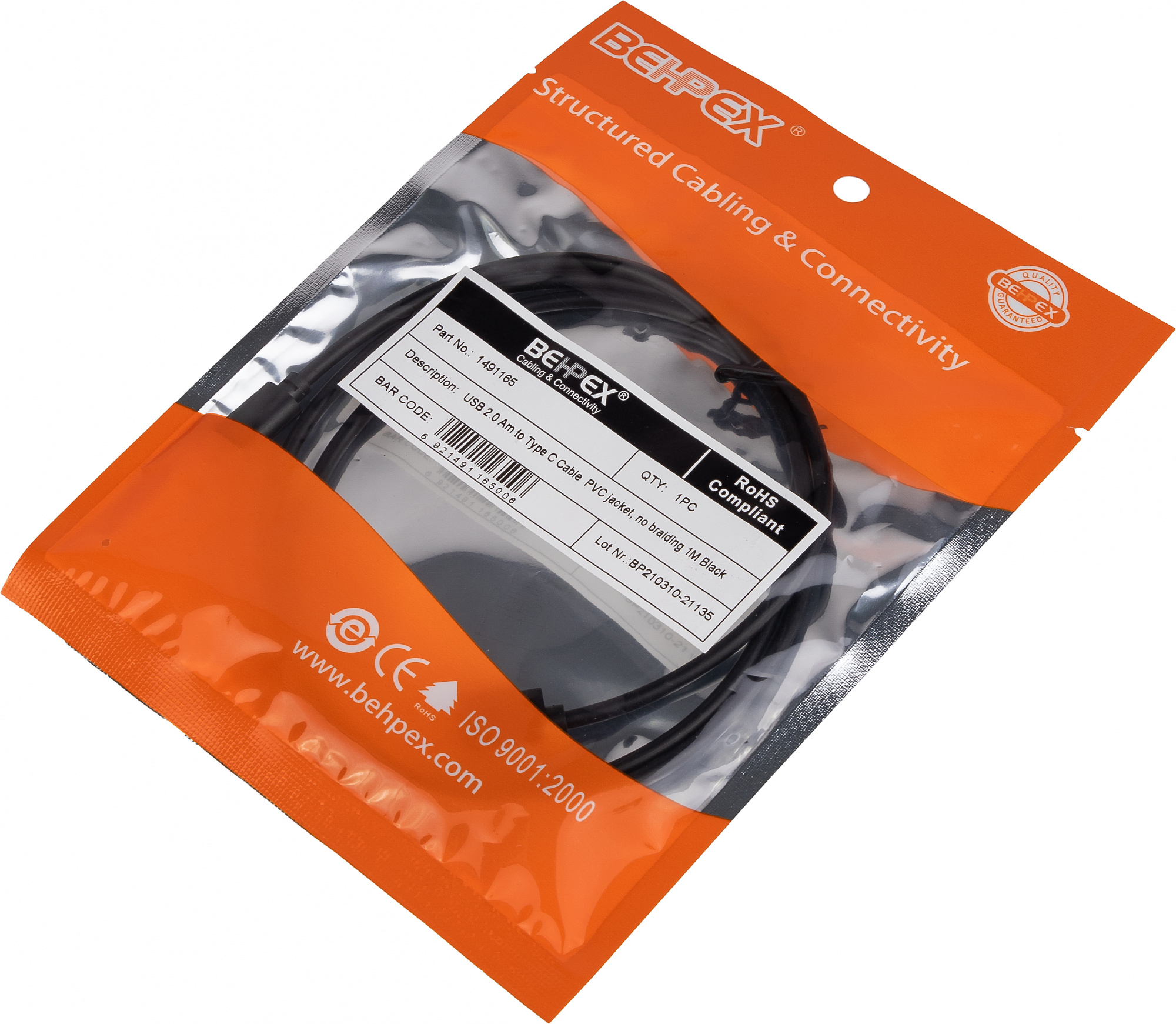 Кабель USB (m)-USB Type-C (m) 1м черный