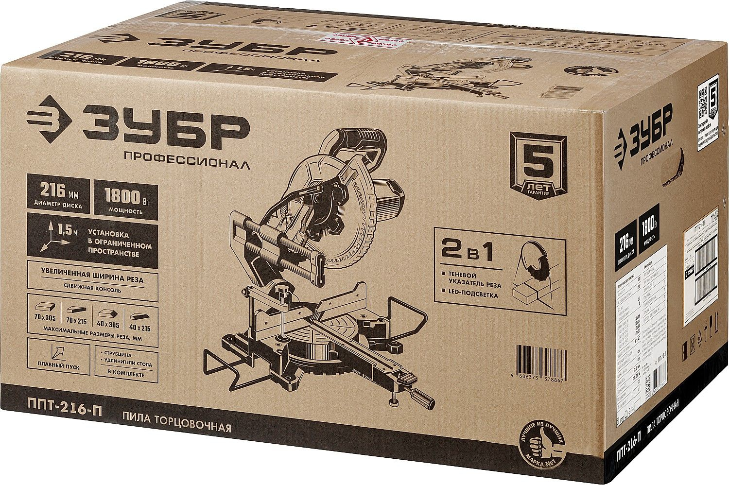 Торцовочная пила Зубр ППТ-216-П 1800Вт 4500об/мин d=216мм