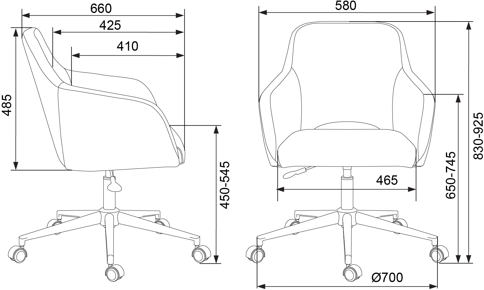 - Ширина с подлокотниками580
