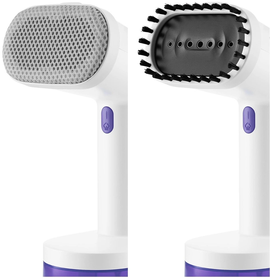 - Насадки в комплектеВ комплекте с ручным отпаривателем идут 2 насадки. Ворсовая легко чистит загрязнённые поверхности, а также убирает шерсть домашних животных, волосы, ворс. Тканевая насадка необходима при работе с деликатными тканями.