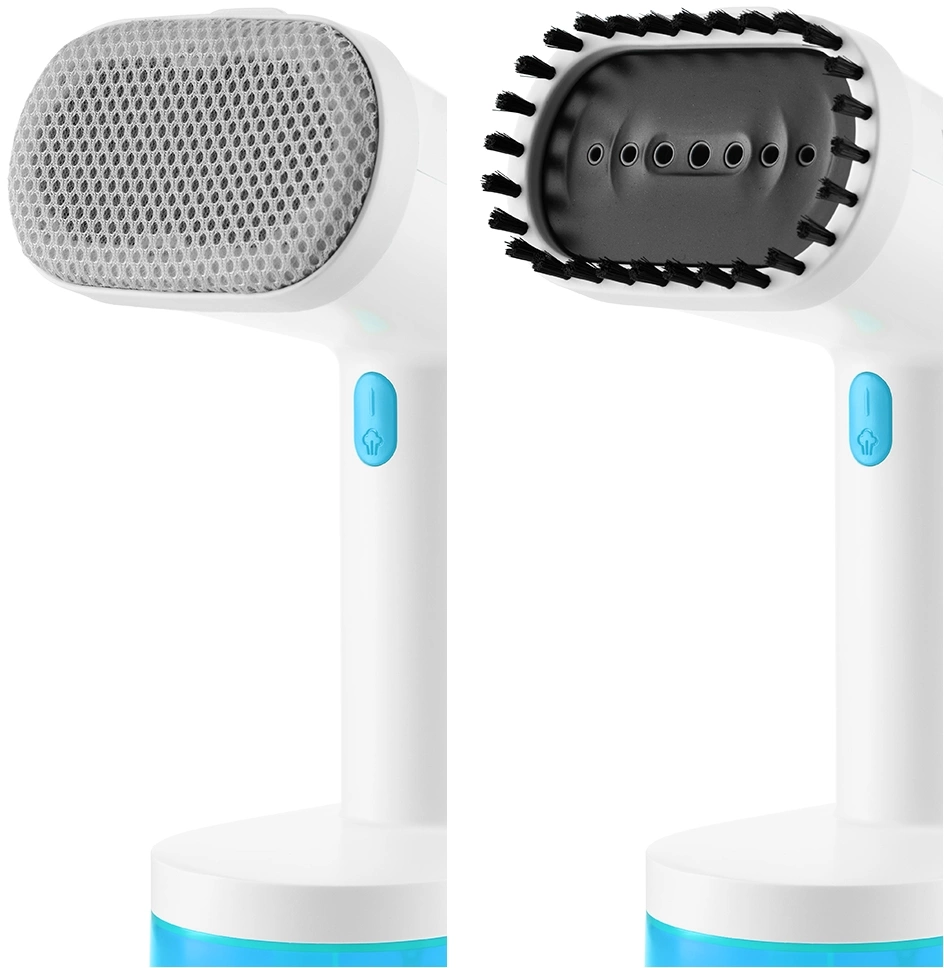 - Насадки в комплектеВ комплекте с ручным отпаривателем идут 2 насадки. Ворсовая легко чистит загрязнённые поверхности, а также убирает шерсть домашних животных, волосы, ворс. Тканевая насадка необходима при работе с деликатными тканями.