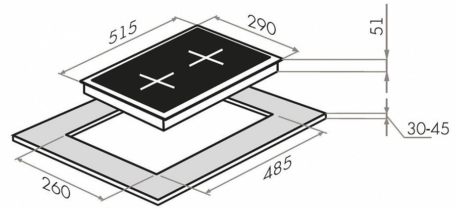 - Размеры для встраивания260x485
