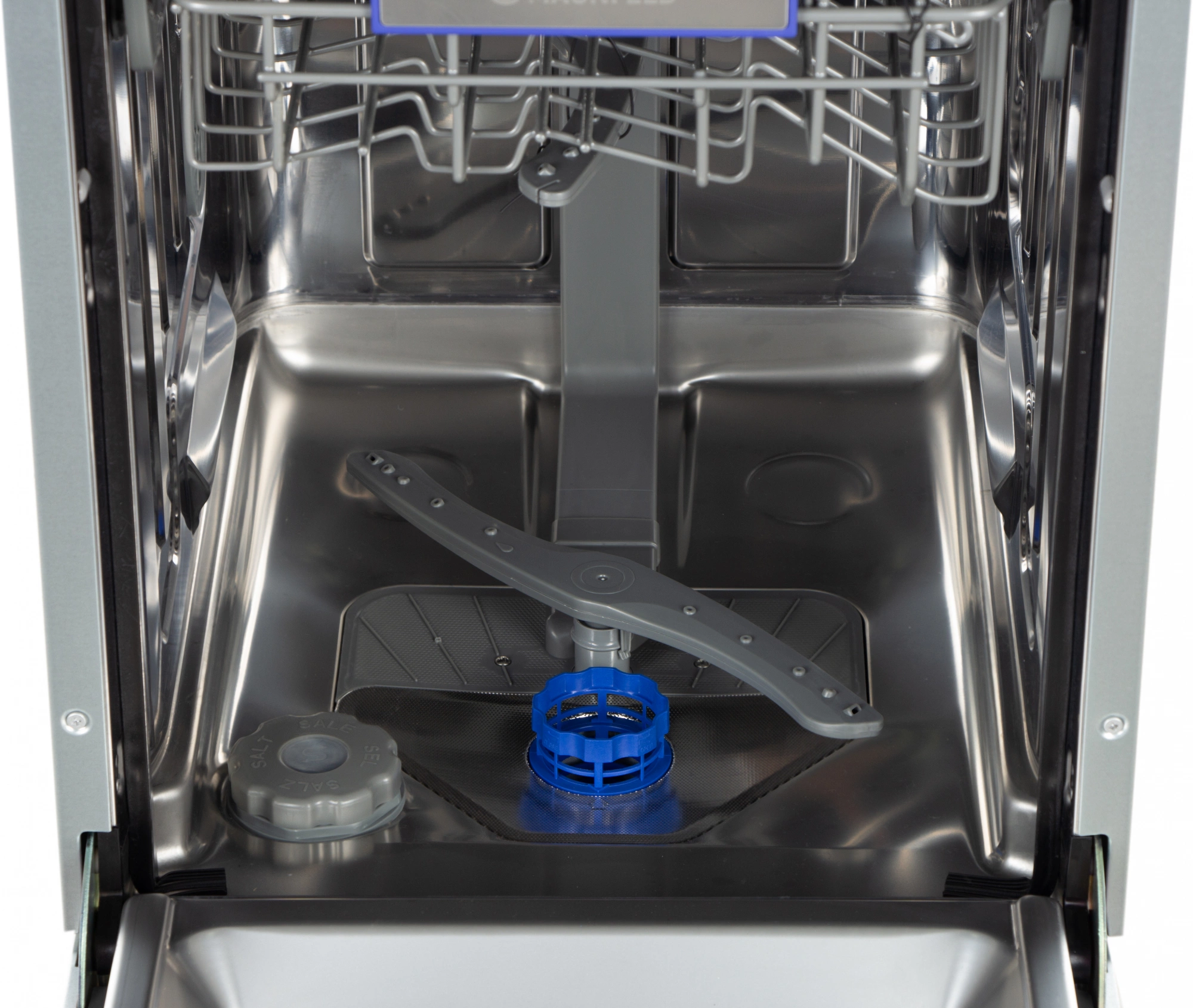 - Внутренняя конструкциякорзина для столовых приборов, освещение, полки для кружек, разбрызгиватель над верхней корзиной, складные держатели тарелок