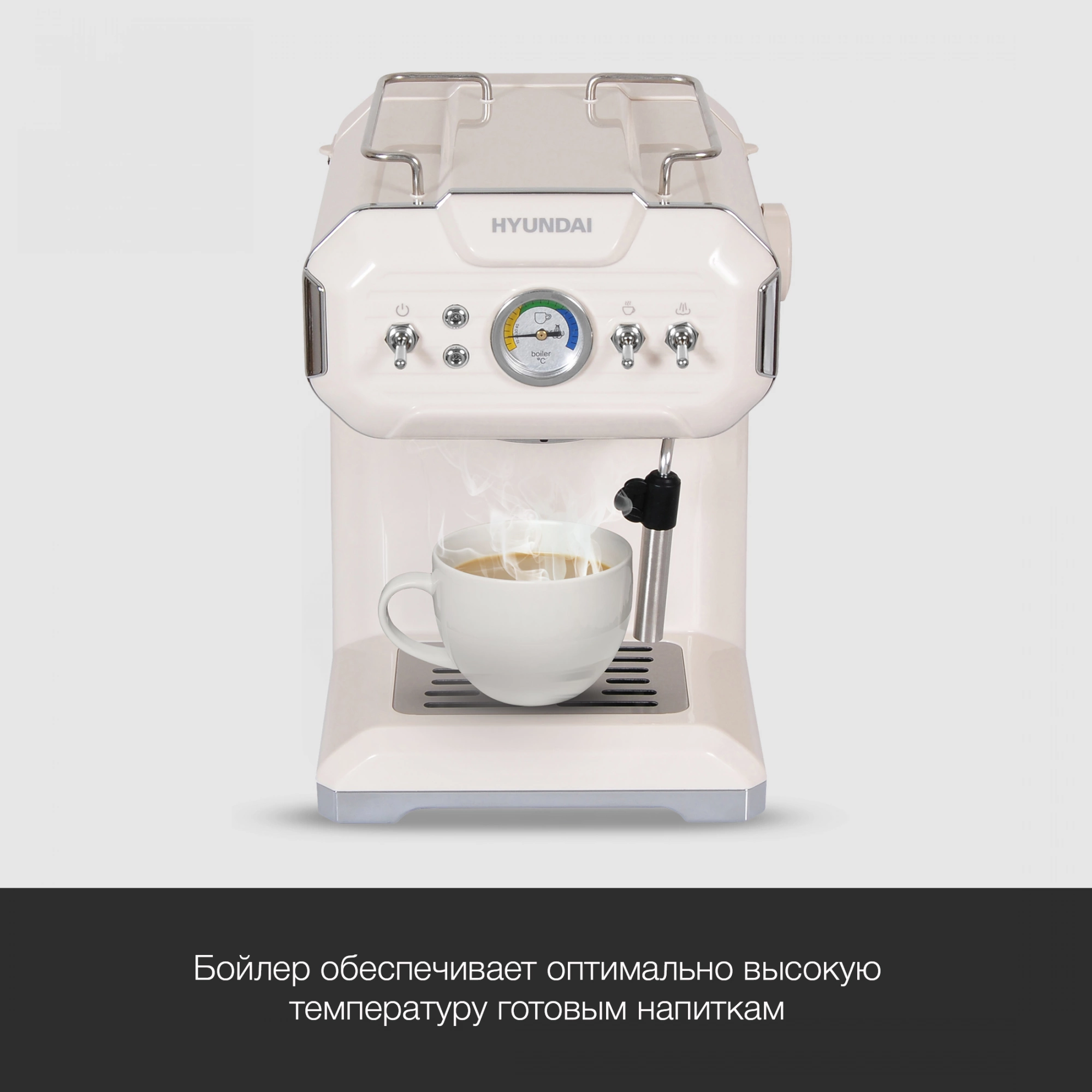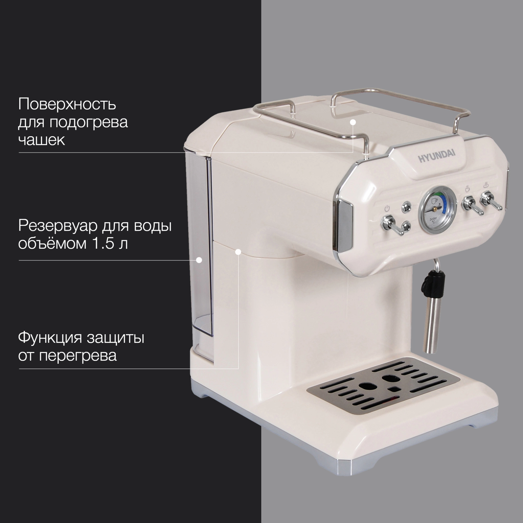 Кофеварка рожковая Hyundai HEM-5300 850Вт бежевый/серебристый