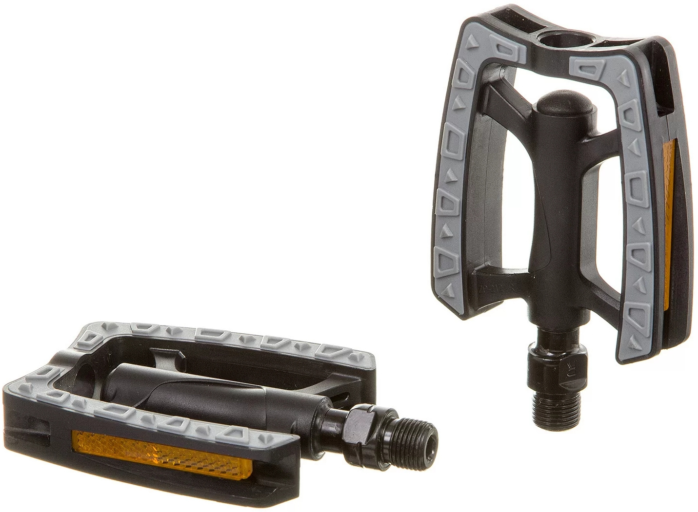 Удобные пластиковые педали-платформы STG FP-212 отлично подходят для установки на прогулочные велосипеды для катания в городской среде. Улучшенное сцепление обеспечивают рифленые резиновые накладки с обоих сторон педали. Для безопасности каждая педаль оснащена двумя светоотражающими элементами.