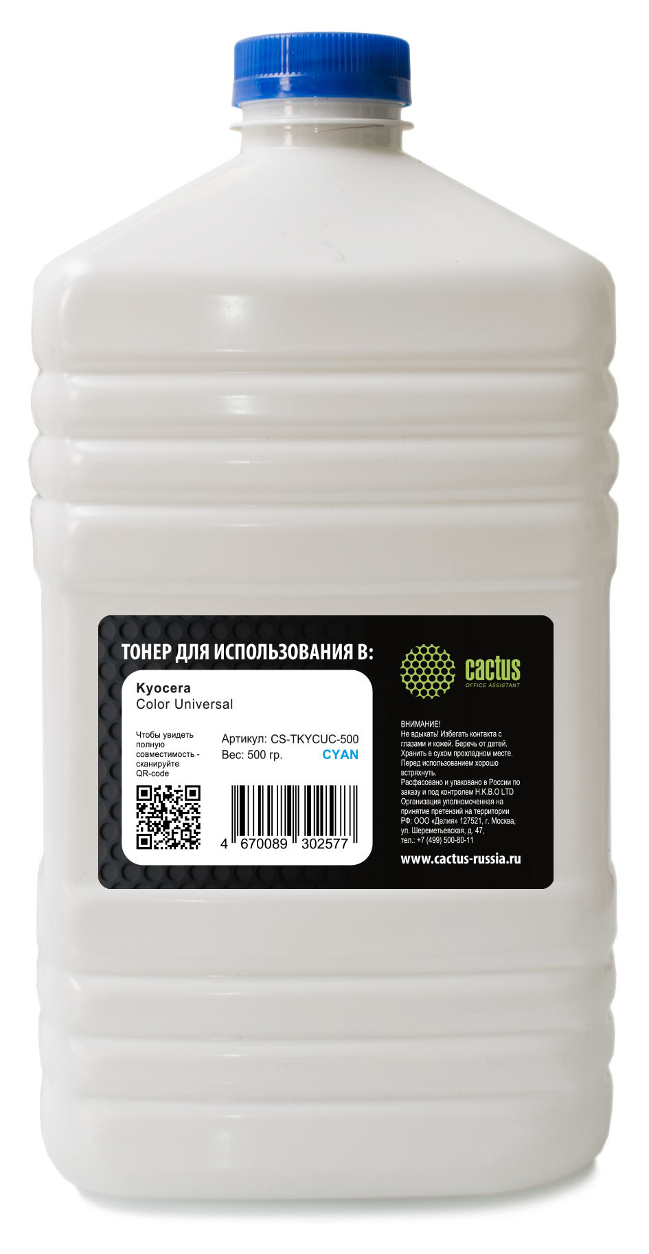 Тонер Cactus CS-TKYCUC-500 голубой флакон 500гр. для принтера Kyocera Color Universal TK-5хх/5270/8xx/8115/8305