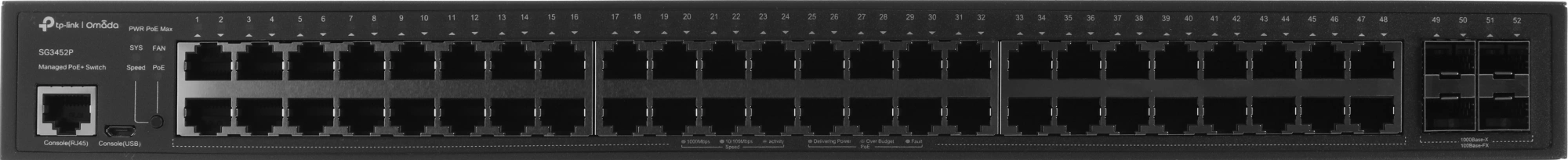 Коммутатор TP-Link SG3452P (L2+) 48x1Гбит/с 4SFP 48PoE+ 384W управляемый