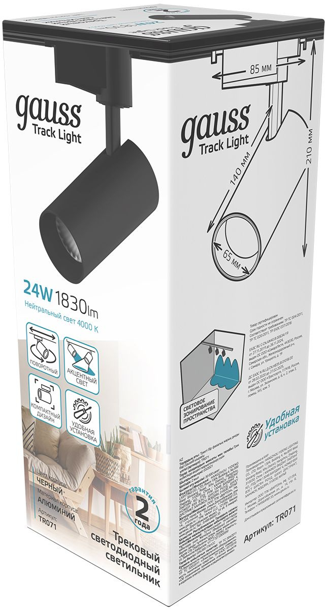 Система трековая Gauss TR071 4000K цв.св.:белый нейтральный черный