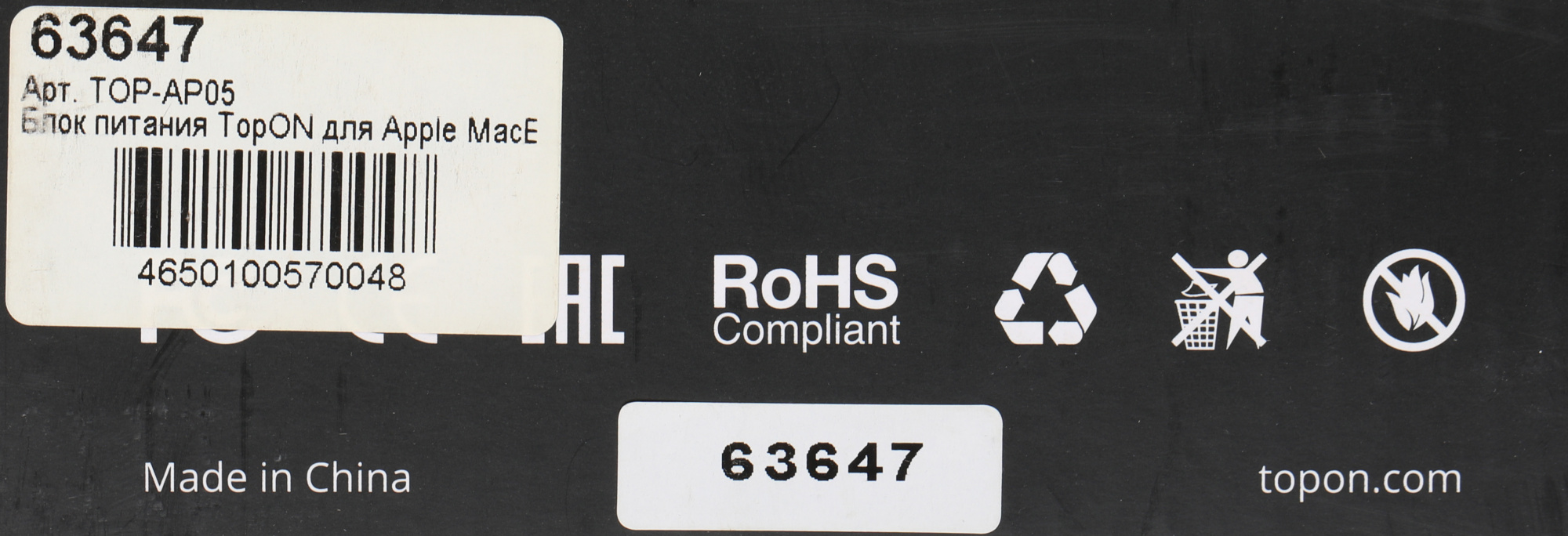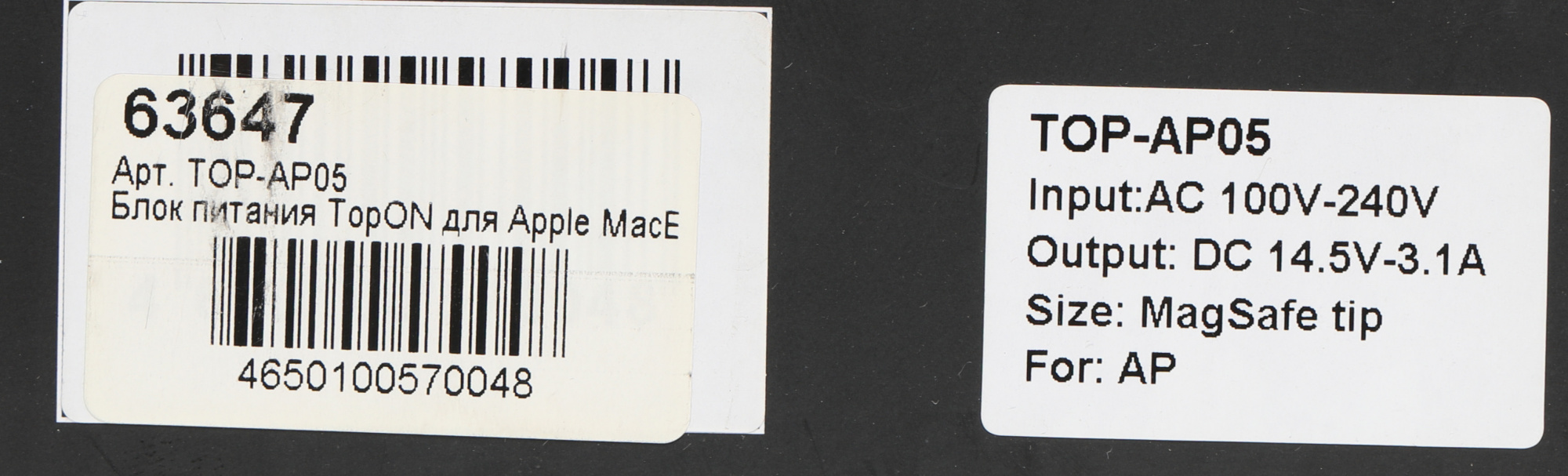 Мощность 45W Напряжение 14.5V Сила тока 3.1A Коннектор MagSafe 1