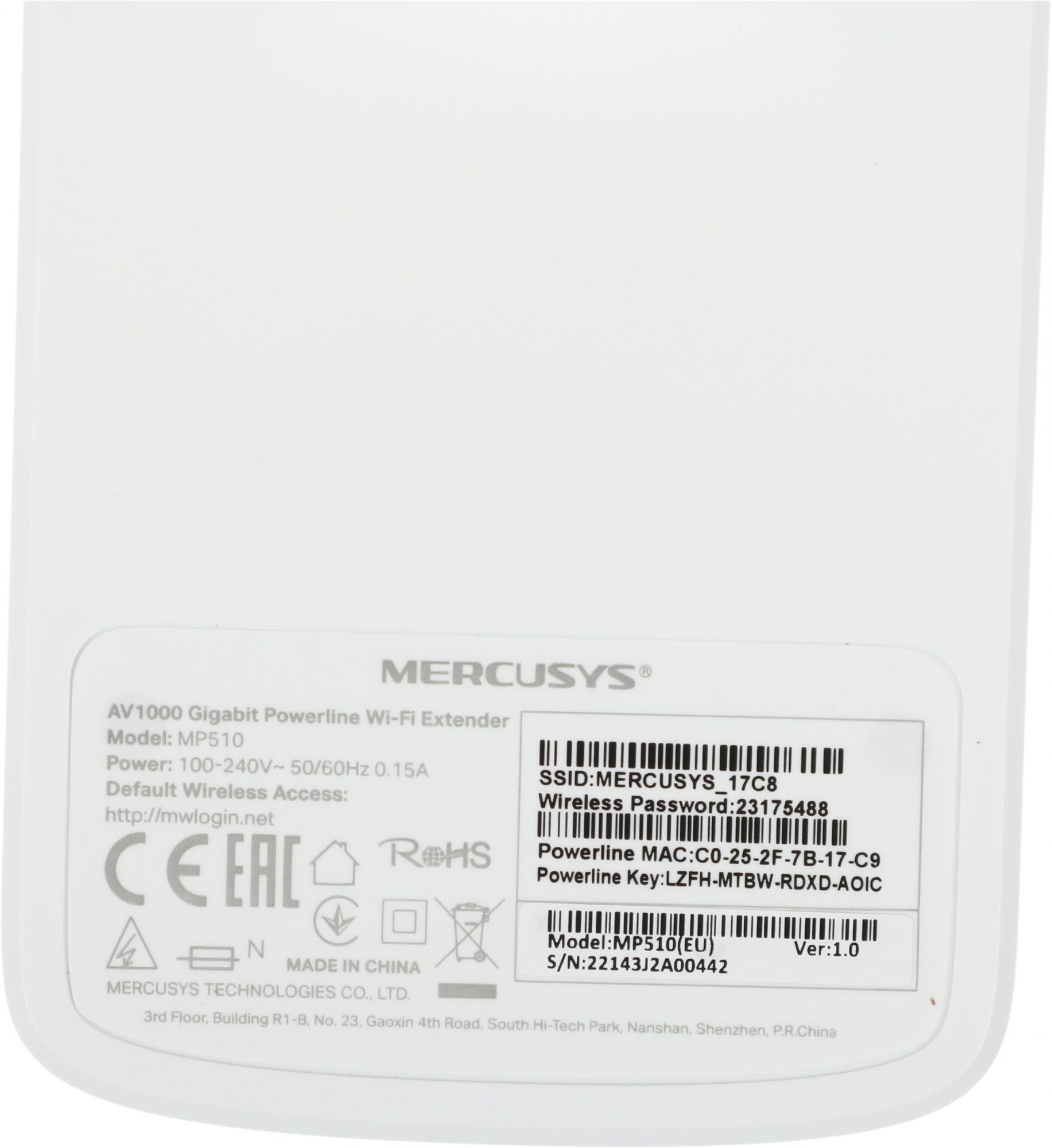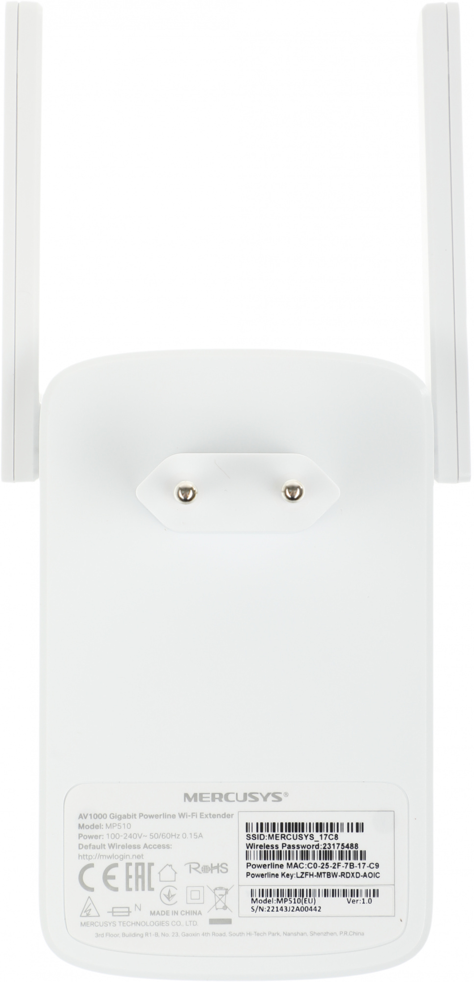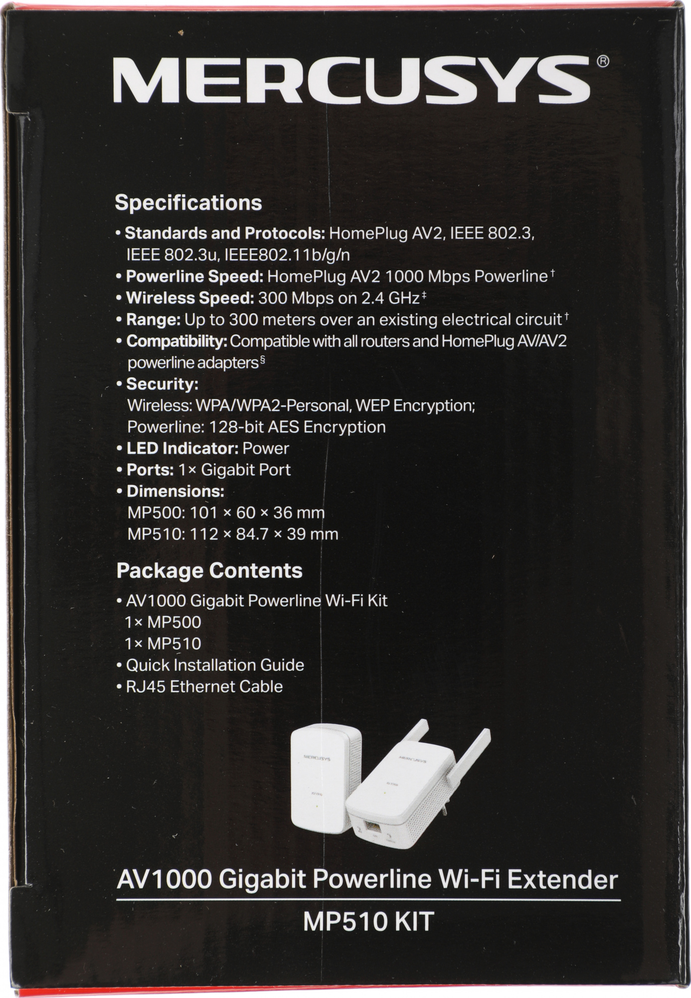 Сетевой адаптер HomePlug AV Mercusys MP510 KIT AV1000 Gigabit Ethernet (ант.внеш.несъем.) 2ант. (упак.:2шт)