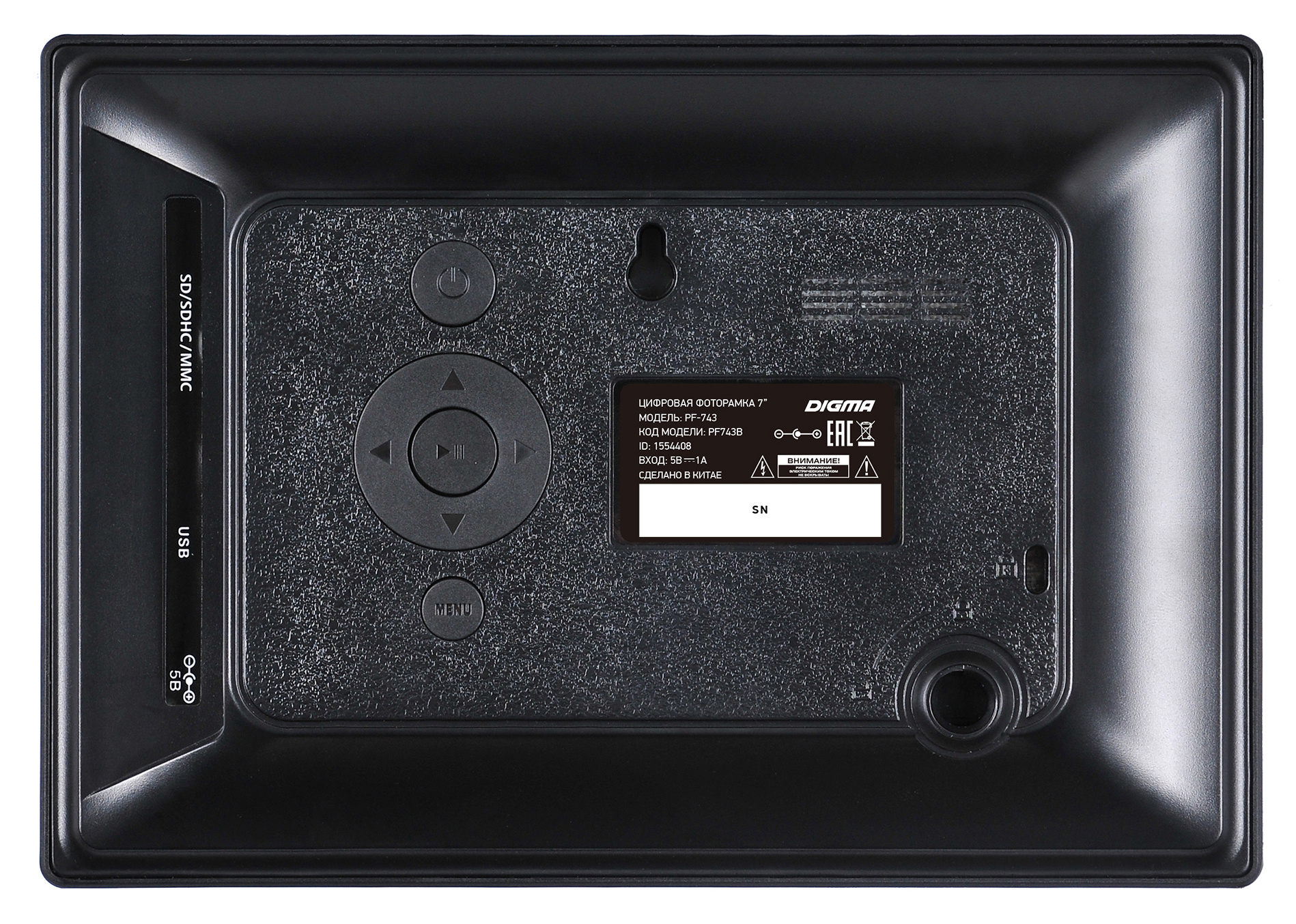 Фоторамка Digma 7" PF-743 IPS 1024x600 черный пластик