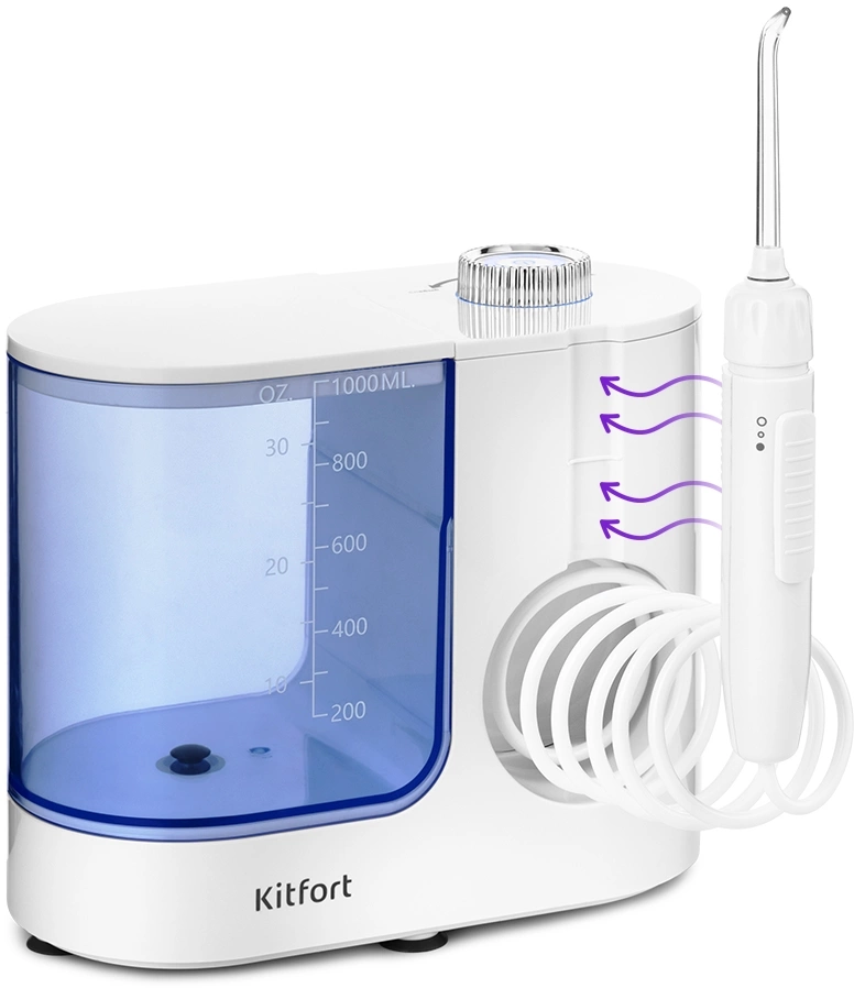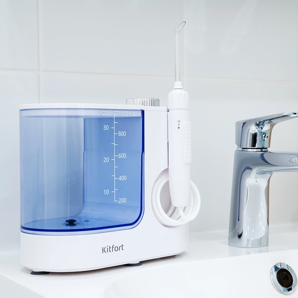 Стационарный ирригатор Kitfort КТ-2914 - это простой и эффективный прибор для чистки полости рта. Тонкая и сильная струя воды не только вымывает остатки еды, налёт из межзубного пространства и пародонтальных карманов, но и массажирует дёсны.
