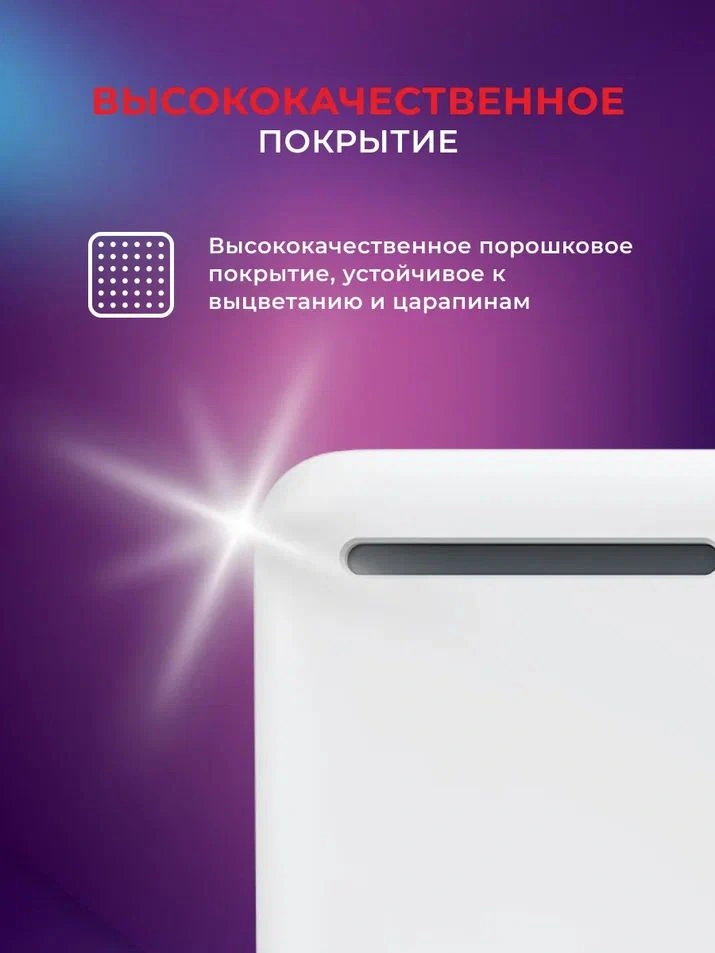 - ОсобенностиМгновенный разогрев за 10-20 секунд. Защита от просушивания воздуха и выжигания кислорода. Система безопасной эксплуатации Security Project. Отсутствие острых углов. Высококачественное порошковое покрытие, устойчивое к выцветанию и царапинам.
