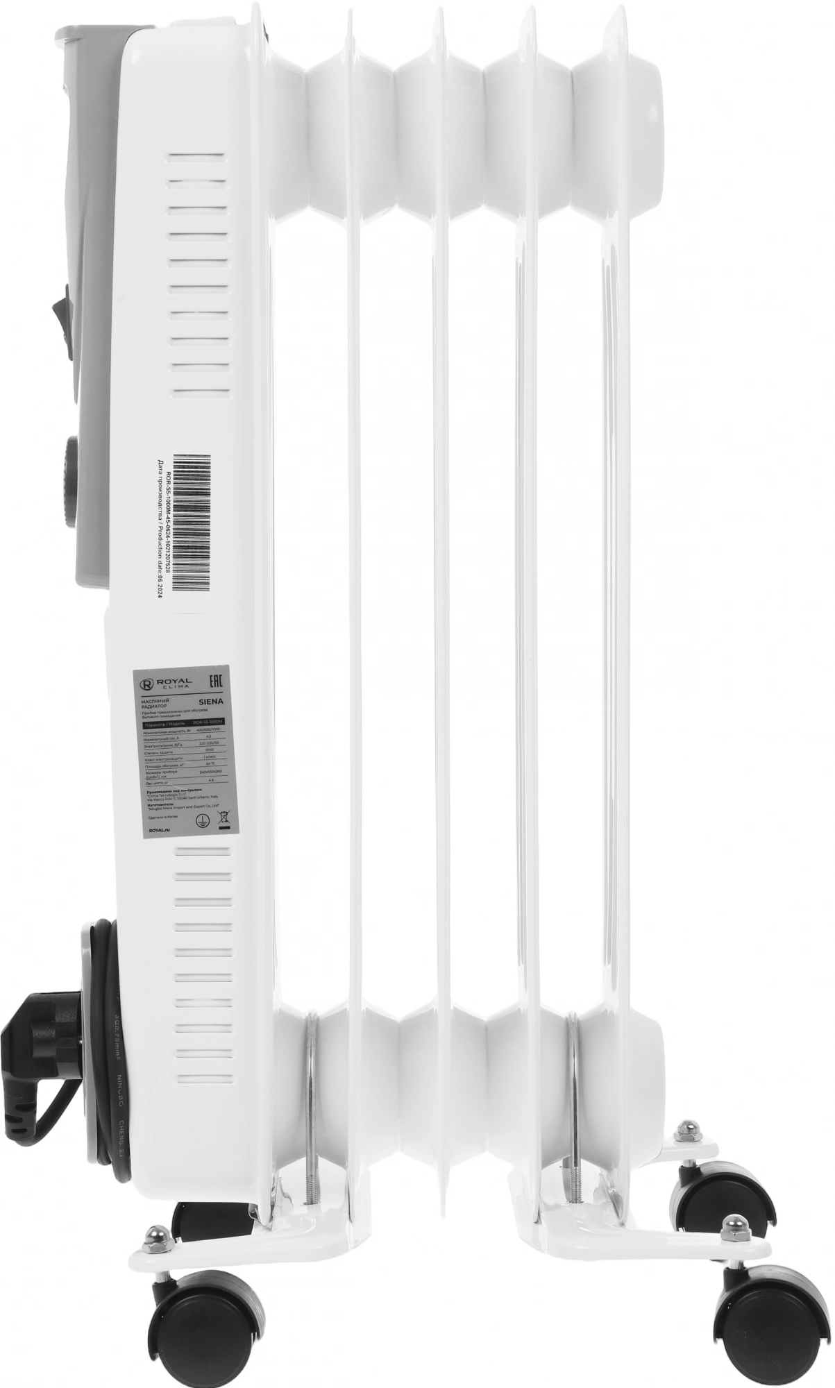 Радиатор масляный Royal Clima Siena ROR-S5-1000M 1000Вт белый/серый