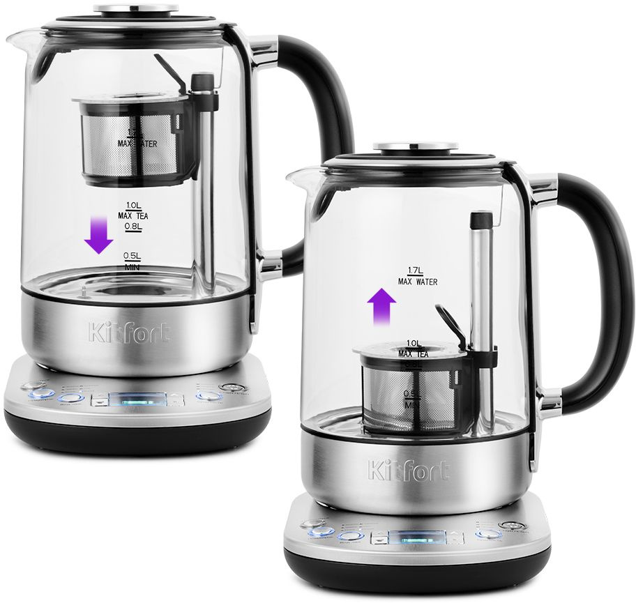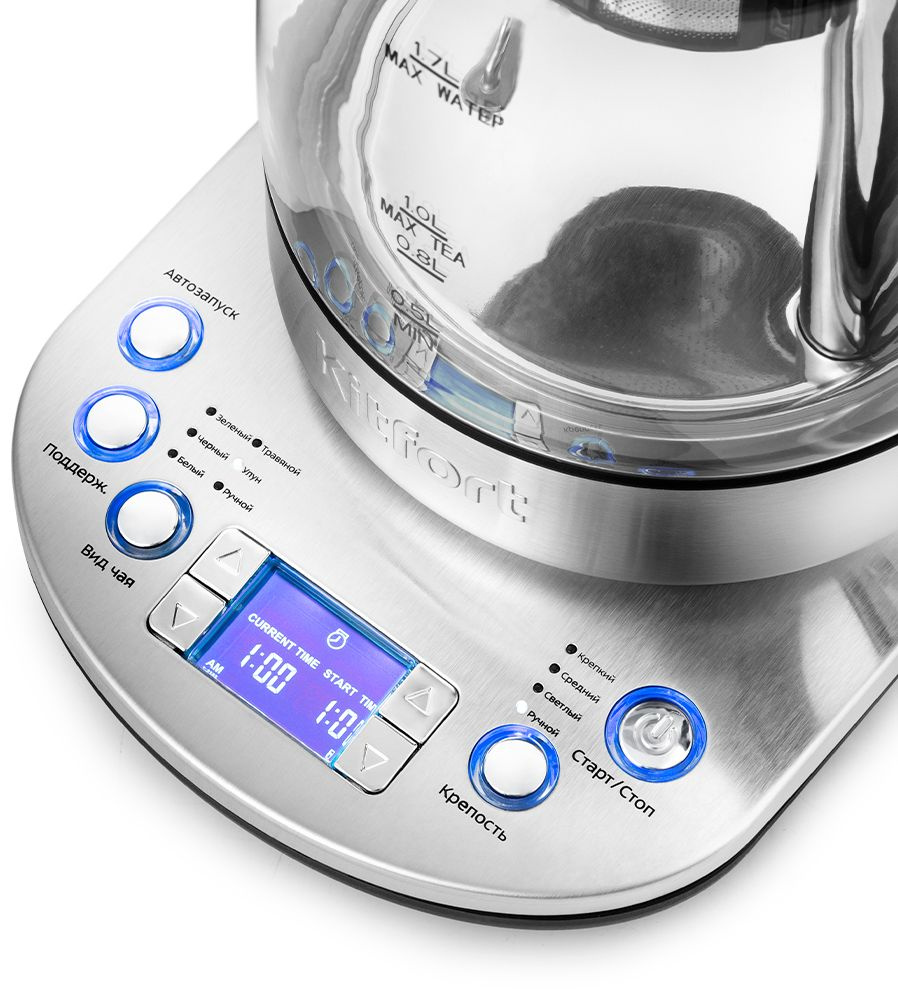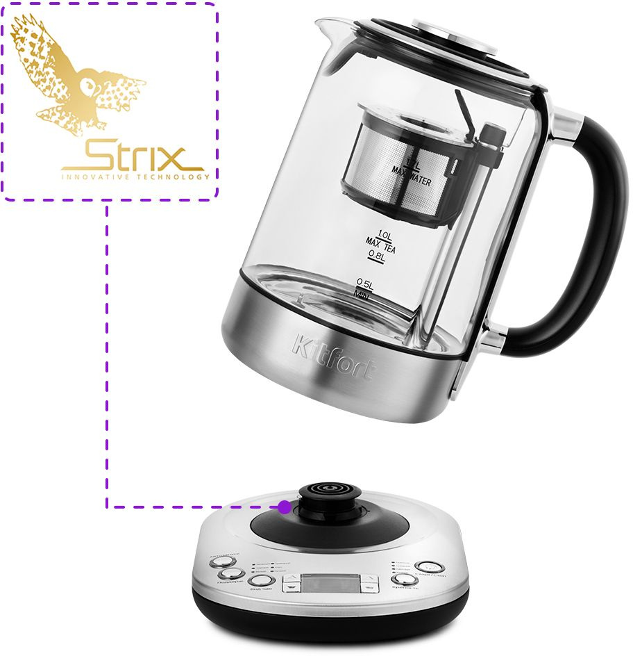 Чайник электрический Kitfort КТ-6116 1.7л. 2200Вт нержавеющая сталь/черный корпус: стекло/металл/пластик