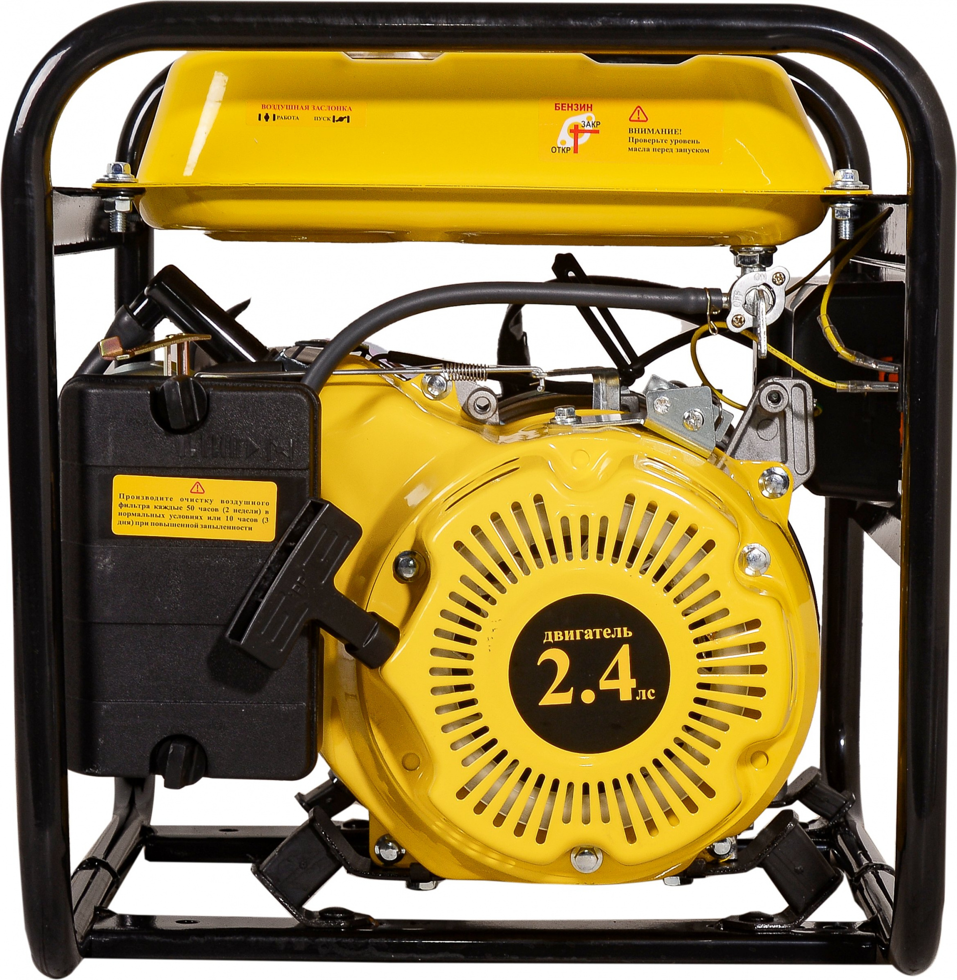 - КомплектацияБензиновый электрогенератор, свечной ключ, комплект резиновых опор с гайками, паспорт.