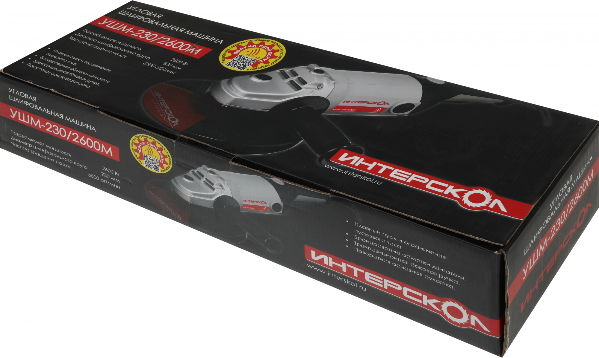 Углошлифовальная машина Интерскол УШМ-230/2600М 2600Вт 6500об/мин рез.шпин.:M14 d=230мм (674.1.0.00)