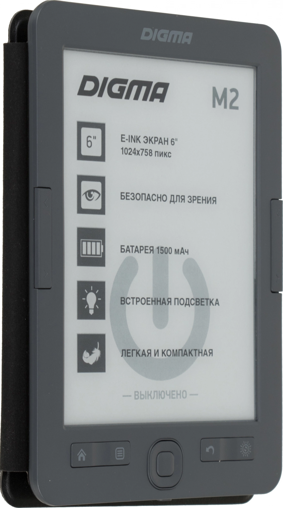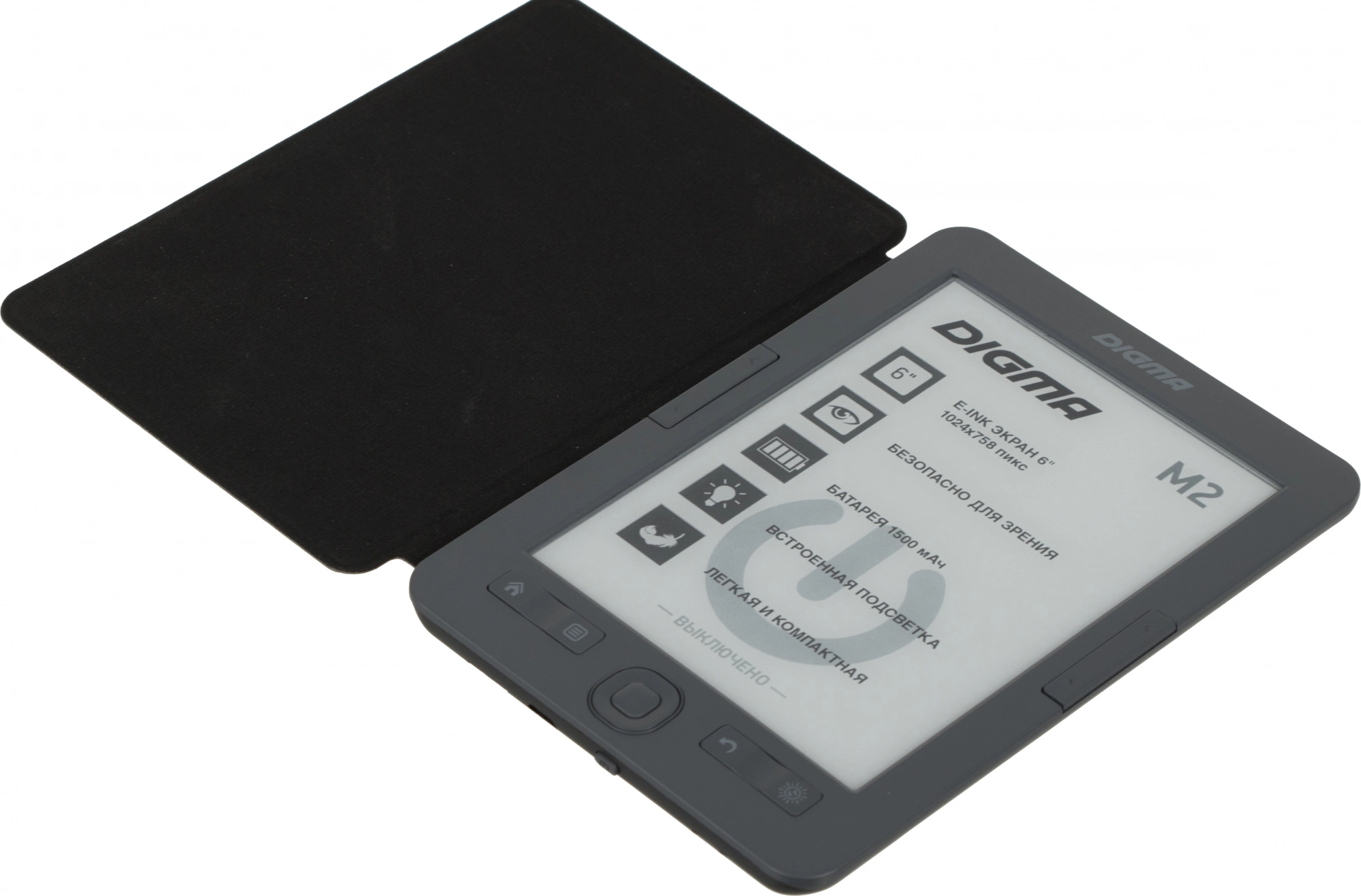 Электронная книга Digma M2 6" E-ink HD Pearl 758x1024 600MHz 128Mb/4Gb/SD/microSDHC/подсветка дисплея темно-серый (в компл.:обложка)