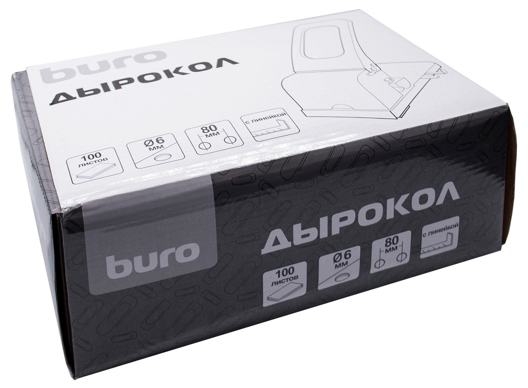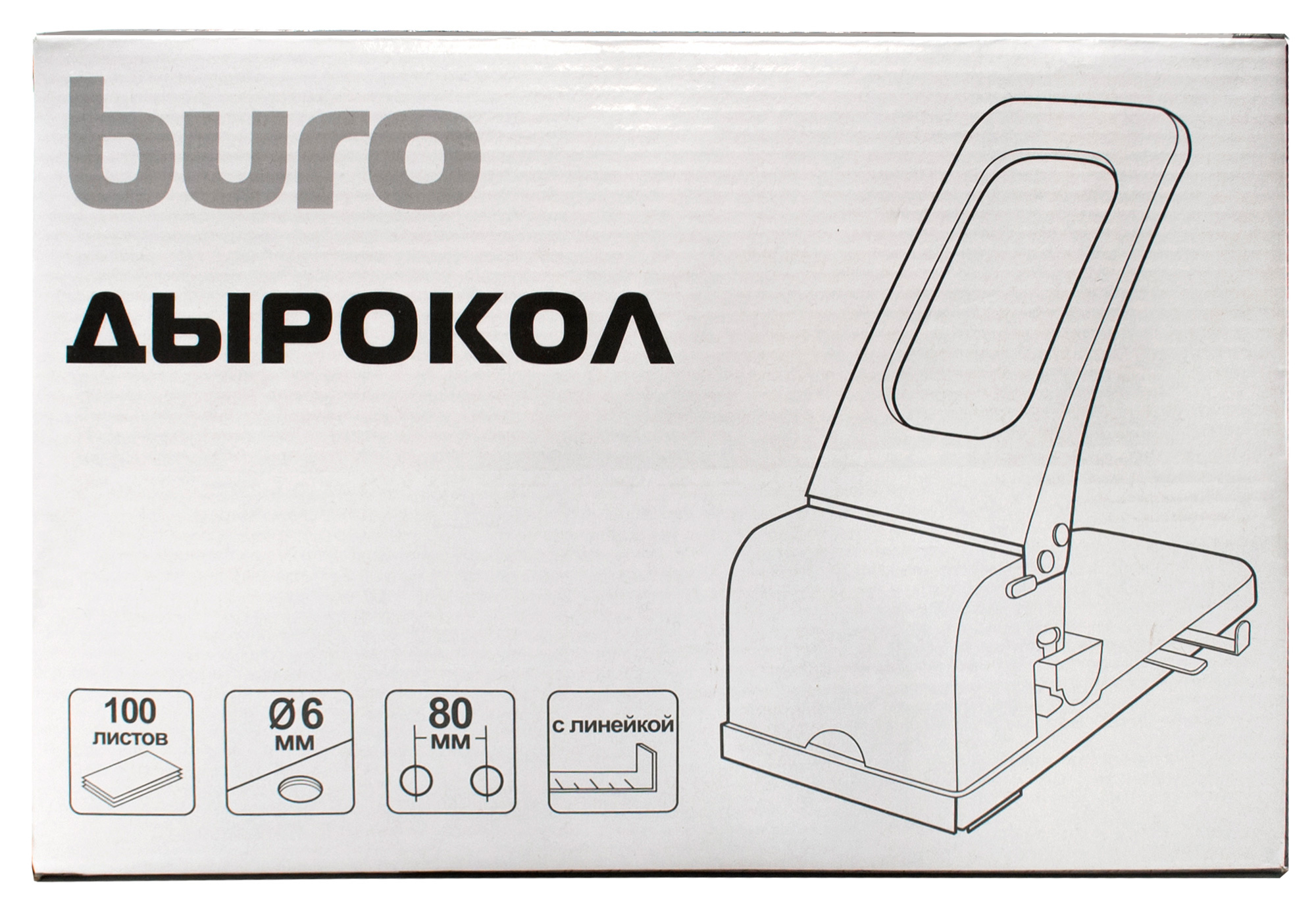 Дырокол Buro Force макс.:100лист. металл черный отв.:2 с линейкой