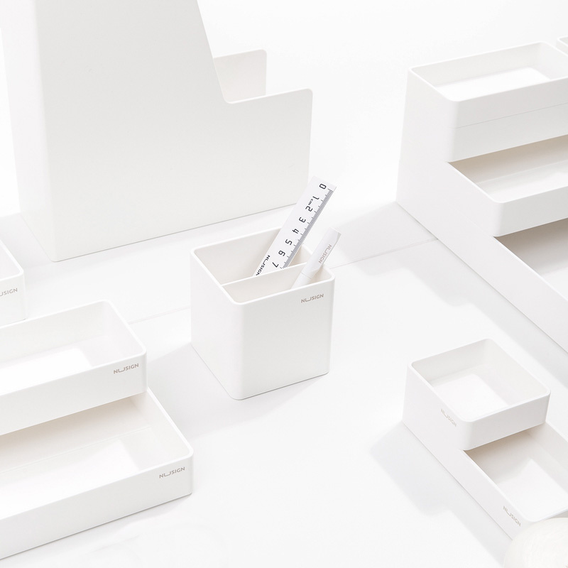 Подставка Deli ENS011WHITE Nusign 2отд. для пишущих принадлежностей 84х84х86мм белый пластик