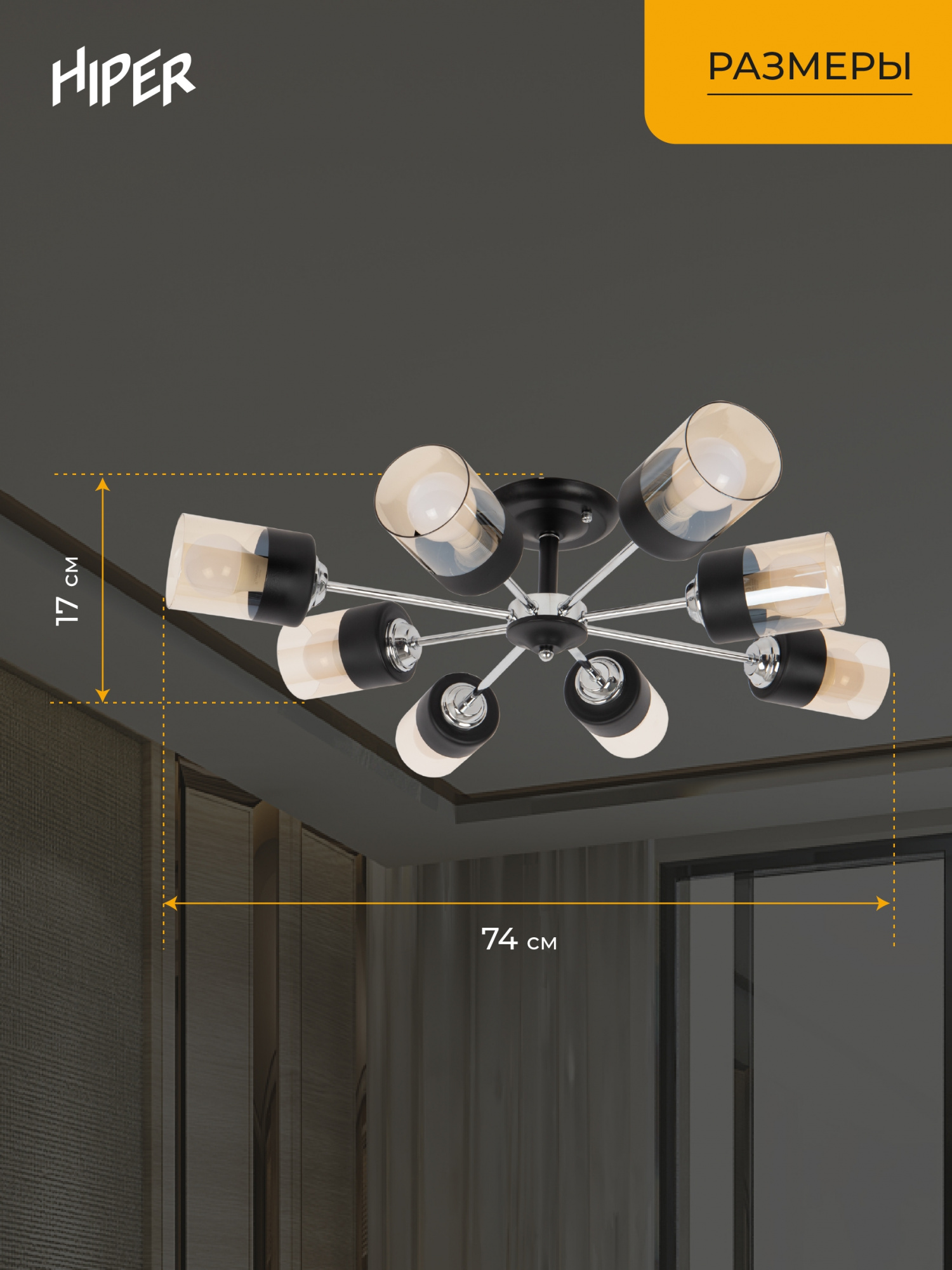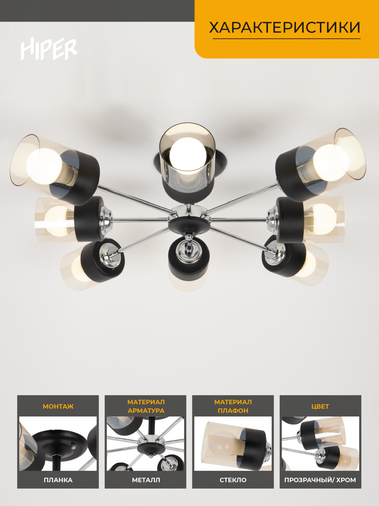 Люстра Hiper Orlando H111-8 потолоч. 3000K черный/хром