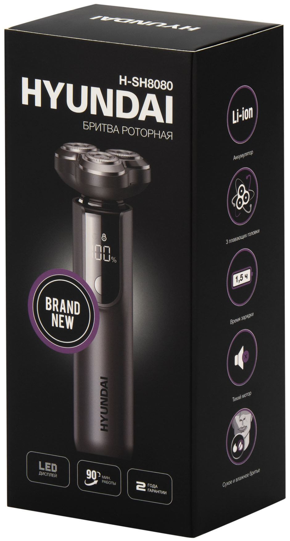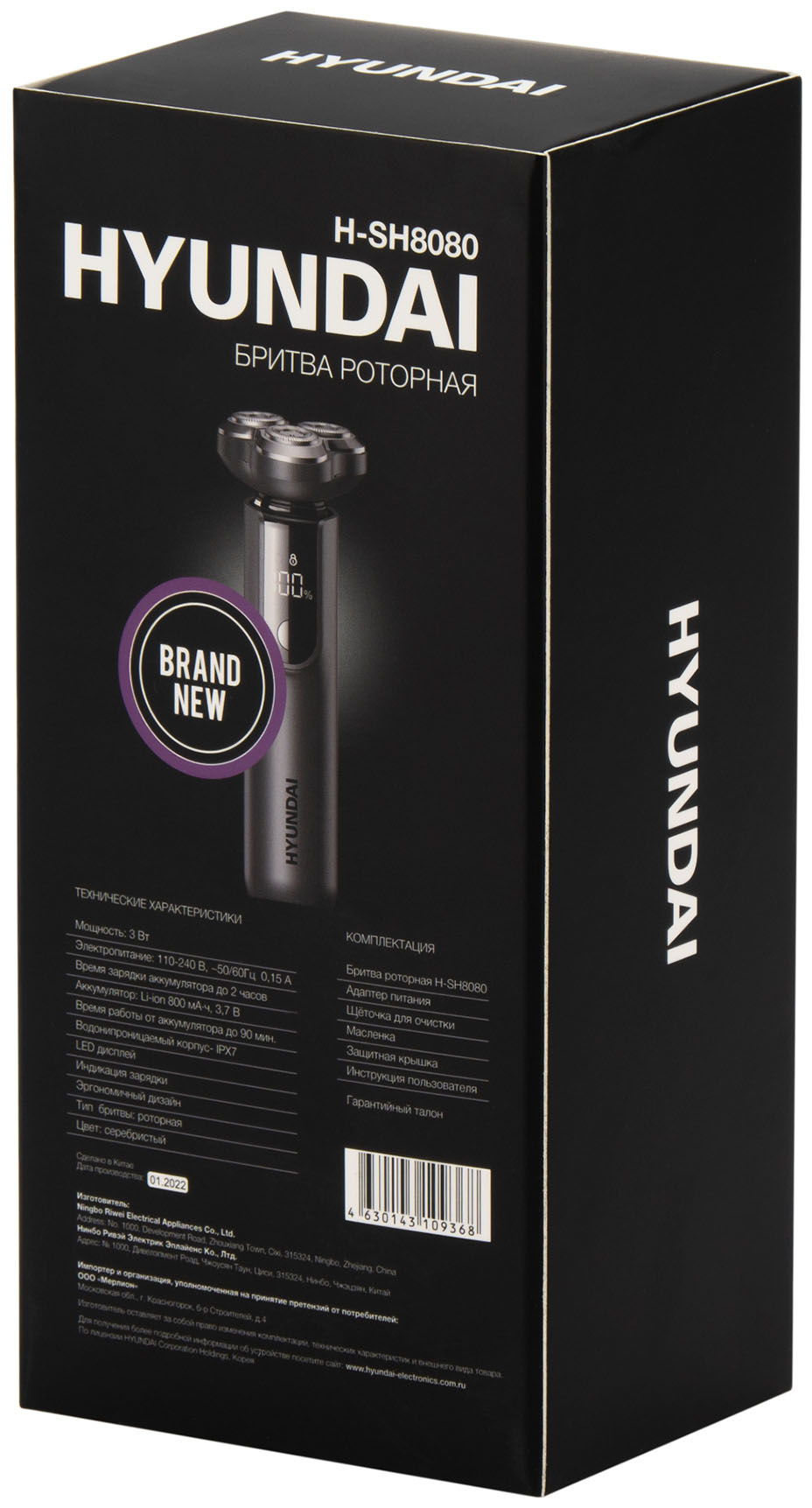 Бритва роторная Hyundai H-SH8080 реж.эл.:3 питан.:аккум. серебристый