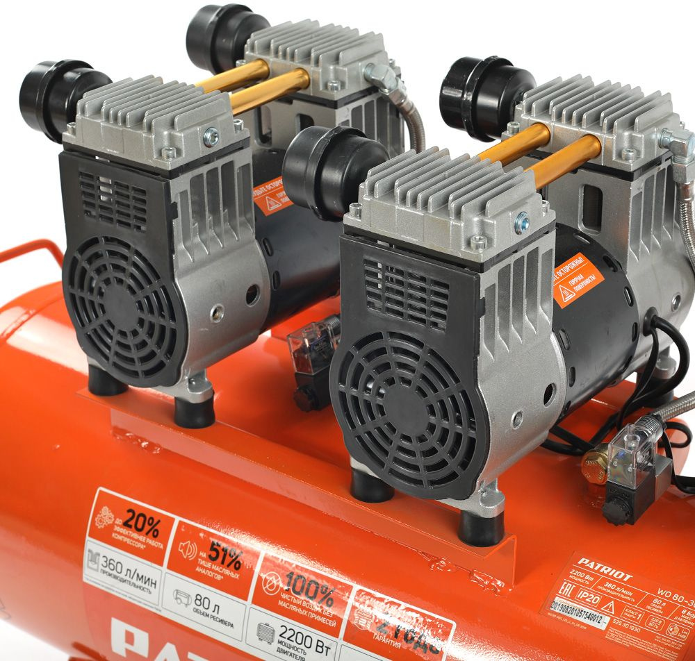 Компрессор поршневой Patriot WO 80-360 безмасляный 80л 2200Вт оранжевый