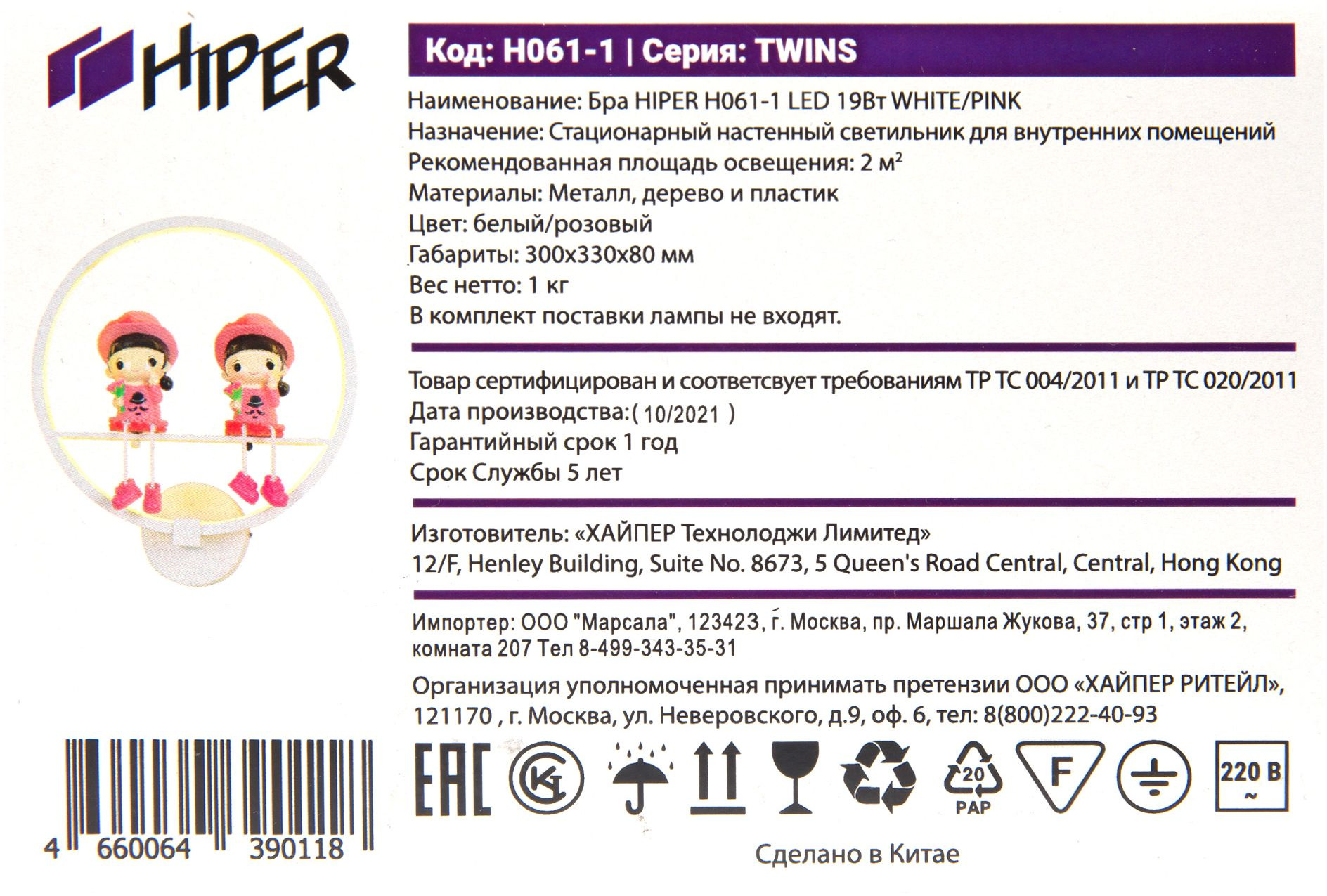 Светильник Hiper Twins H061-1 19Вт 4000K цв.св.:белый нейтральный розовый/белый