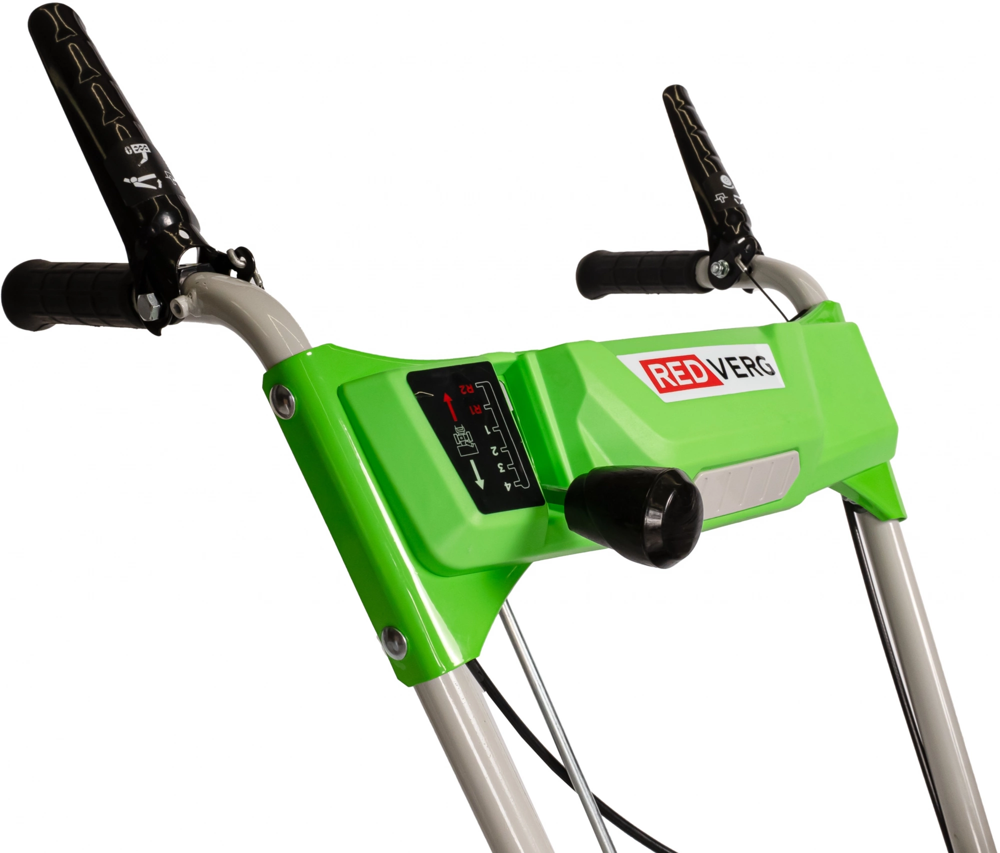 Снегоуборщик RedVerg RD-SB56/7 предназначен для очистки от снега площадок, дорожек на дачном участке или вокруг дома, стоянок под автомобили. Машина снабжена 4 скоростями вперед. Позиция 1 самая медленная, позиция 4 – самая быстрая.