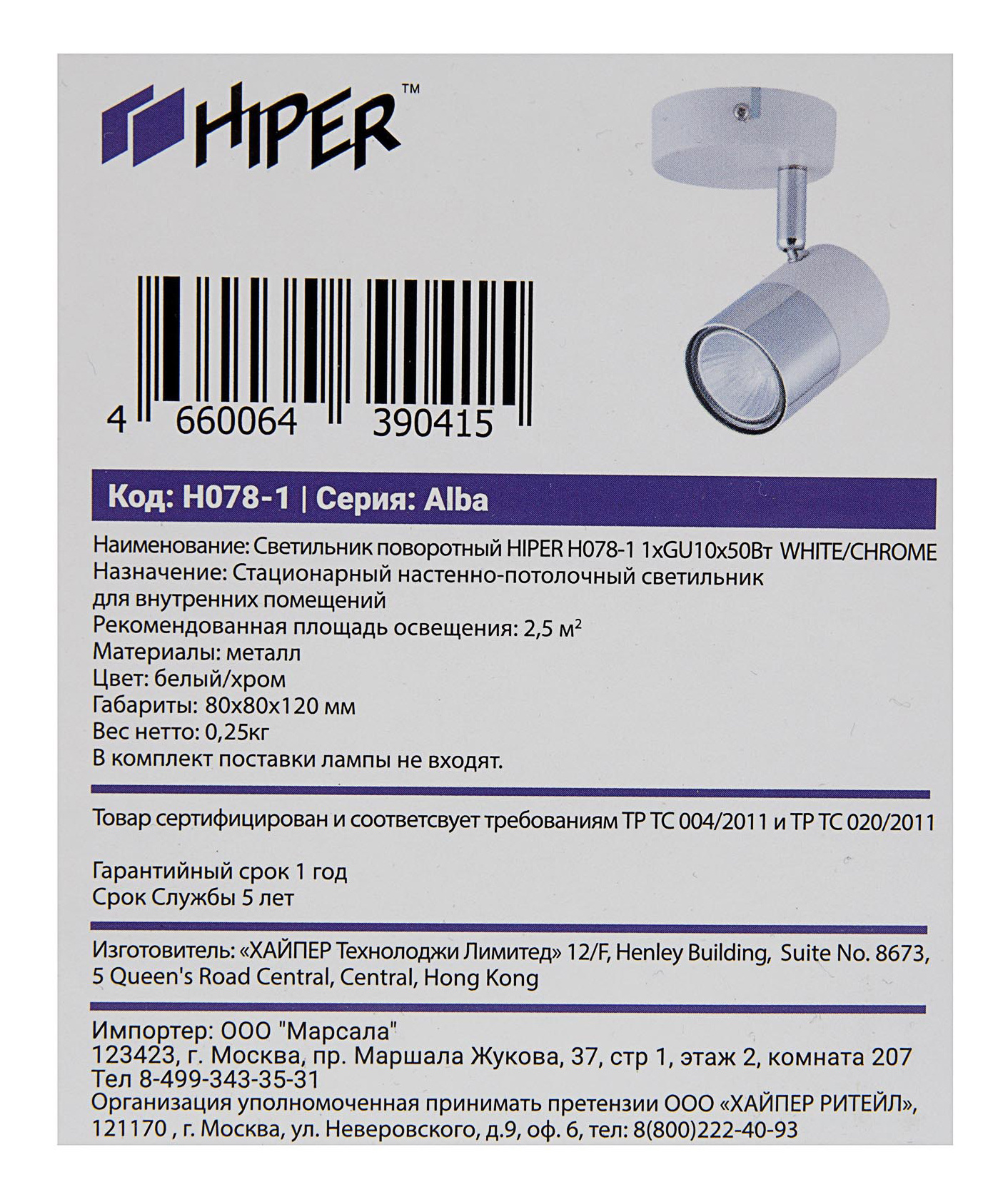| Код производителя | H078-1 |