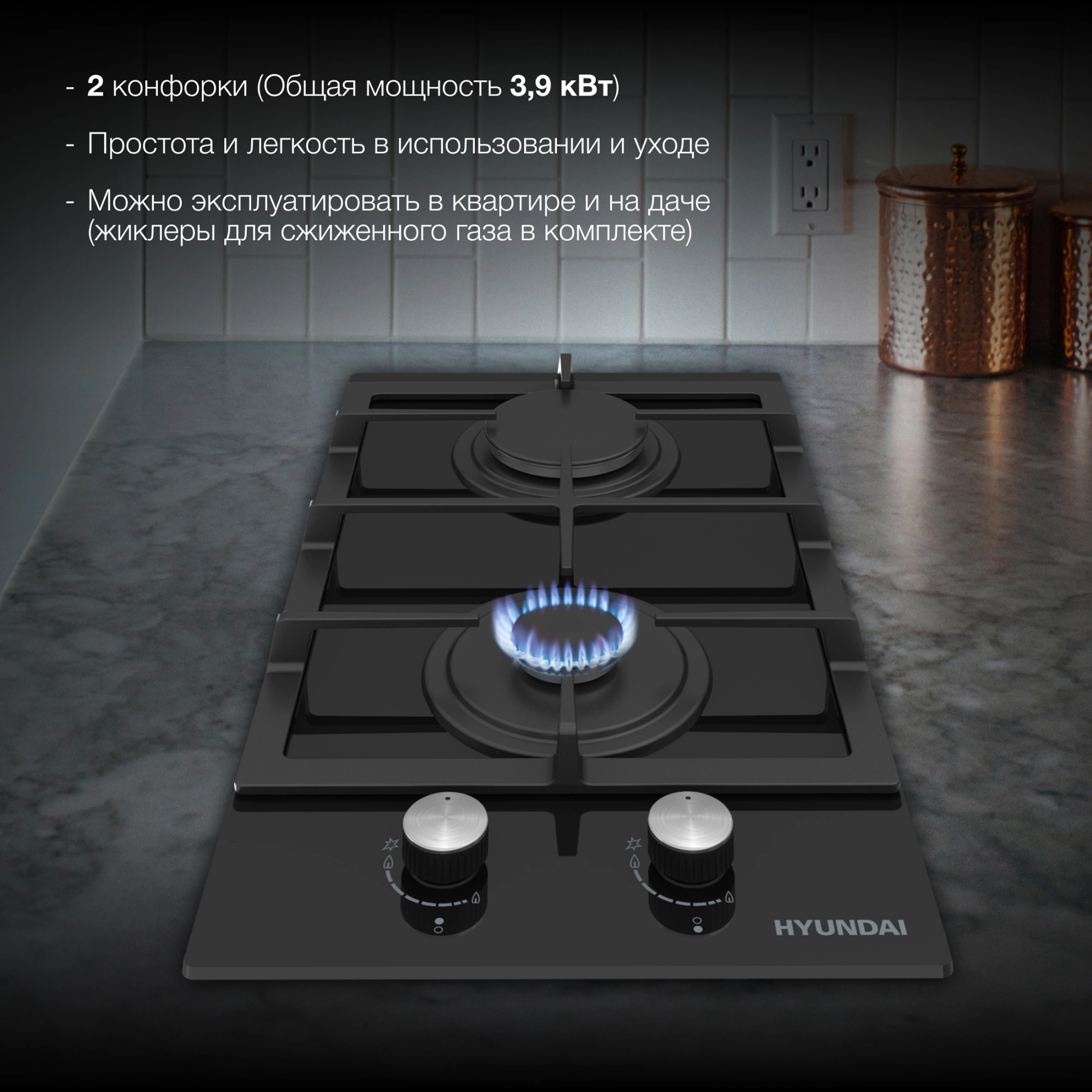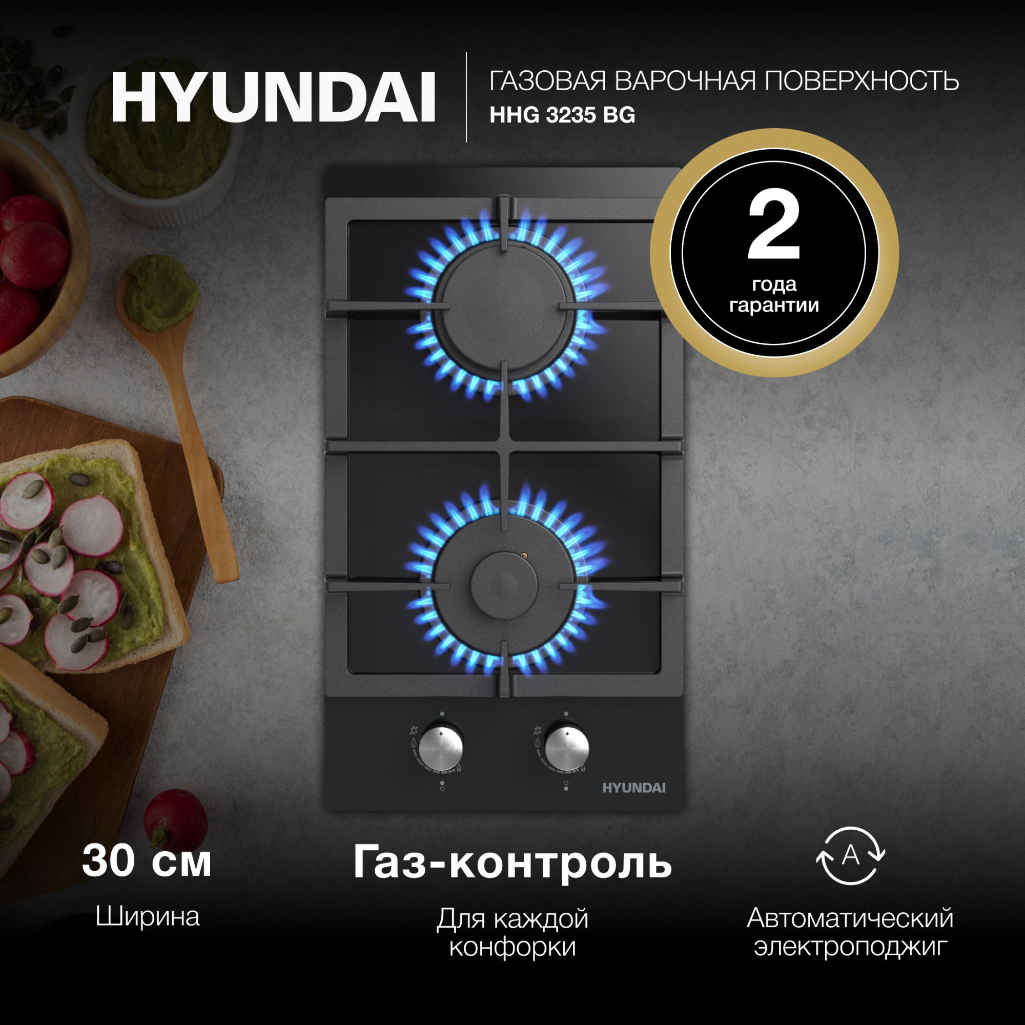 Газовая варочная поверхность Hyundai HHG 3235 BG черный