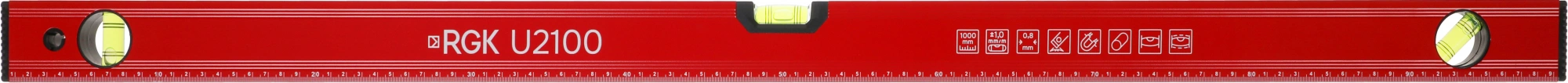 Строительный уровень RGK U2100 длиной 1 м. оснащен тремя ампулами, расположенными горизонтально, вертикально и под углом 45 град. Боковые пластиковые вставки защищают уровень при падении.