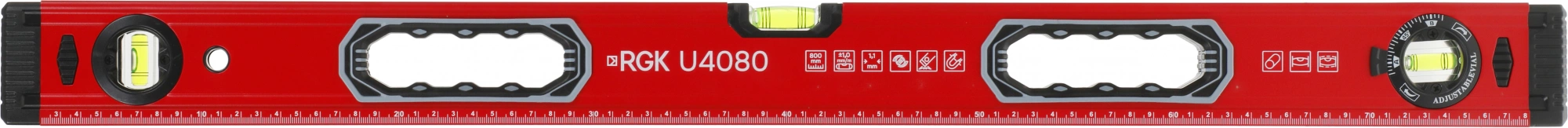 Строительный уровень RGK U4080 длиной 80 см. оснащен магнитом для крепления на металлических поверхностях, чтобы освободить руки при проведении разметки. Поворотная ампула поможет контролировать наклонные поверхности под углом от 0 до 90 град.