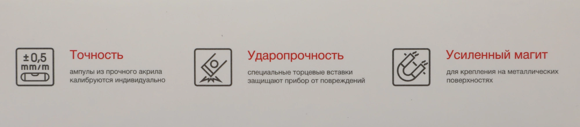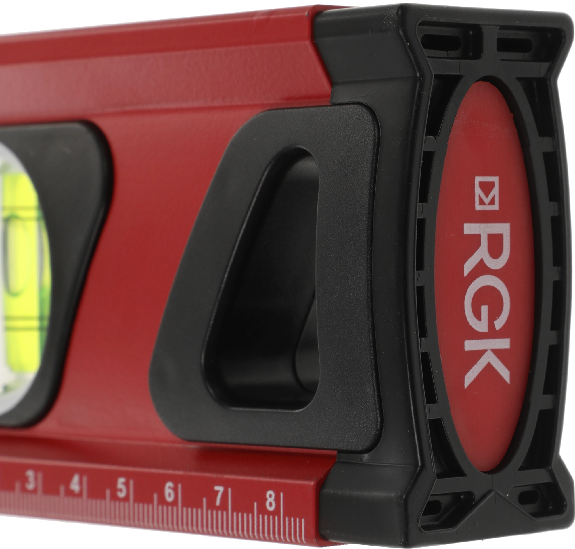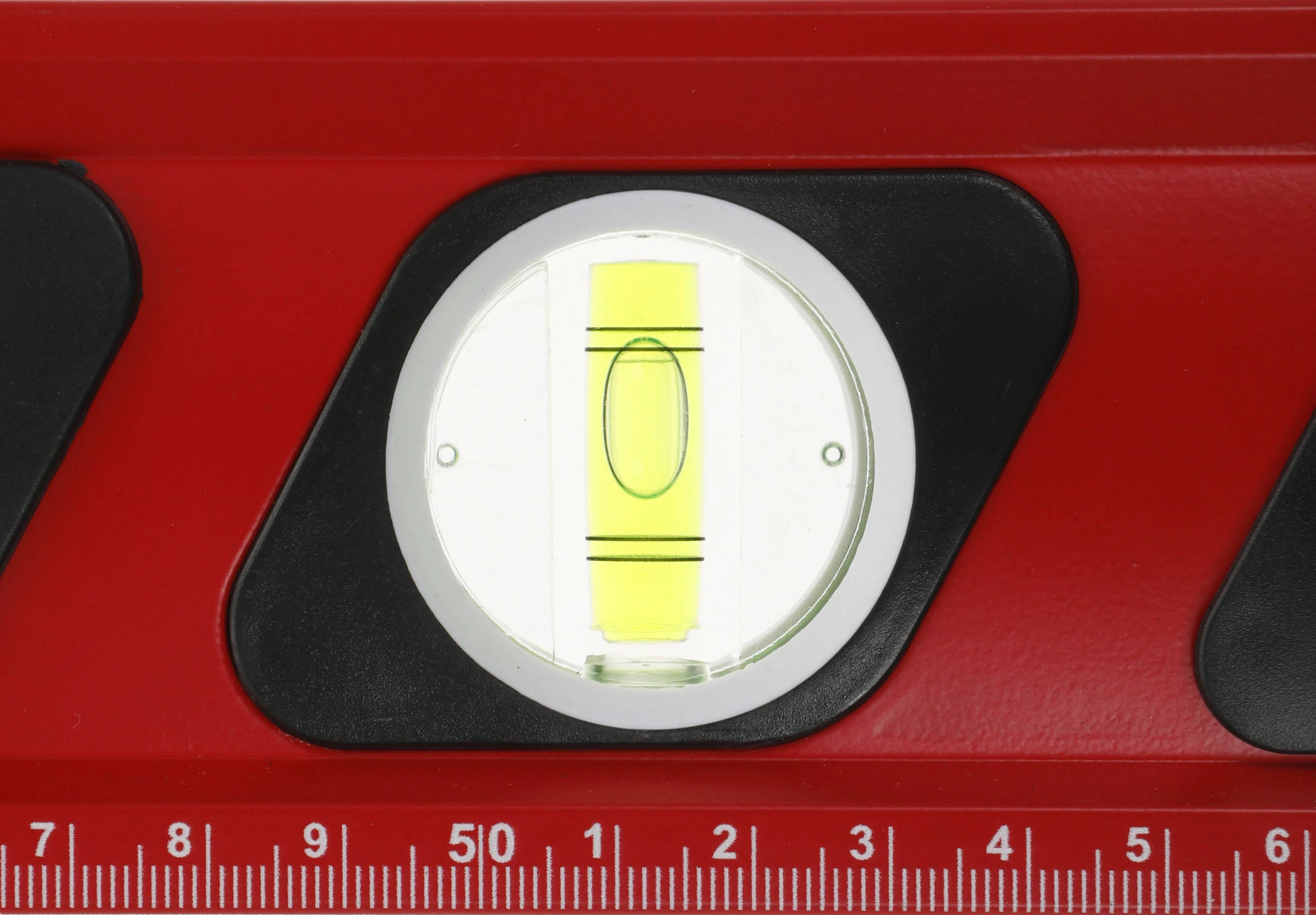 Строительный уровень RGK U7060 длиной 60 см. оснащен магнитом для крепления на металлических поверхностях, чтобы освободить руки при проведении разметки. Специальное смотровое окошко на узком ребре покажет положение пузырька вертикального уровня при измерениях в труднодоступных местах.