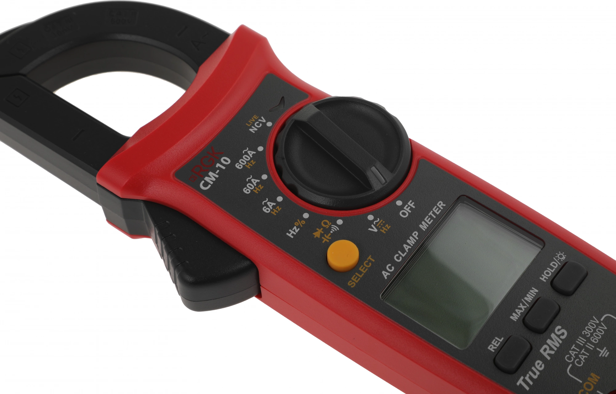 Цифровые токовые клещи RGK CM-10 - удобный и безопасный прибор для измерения больших значений силы переменного тока вплоть до 600А, дополнительно снабженный функционалом мультиметра. Прибор применяется как для решения профессиональных задач в сфере электроэнергетики, так и для бытовых измерений.