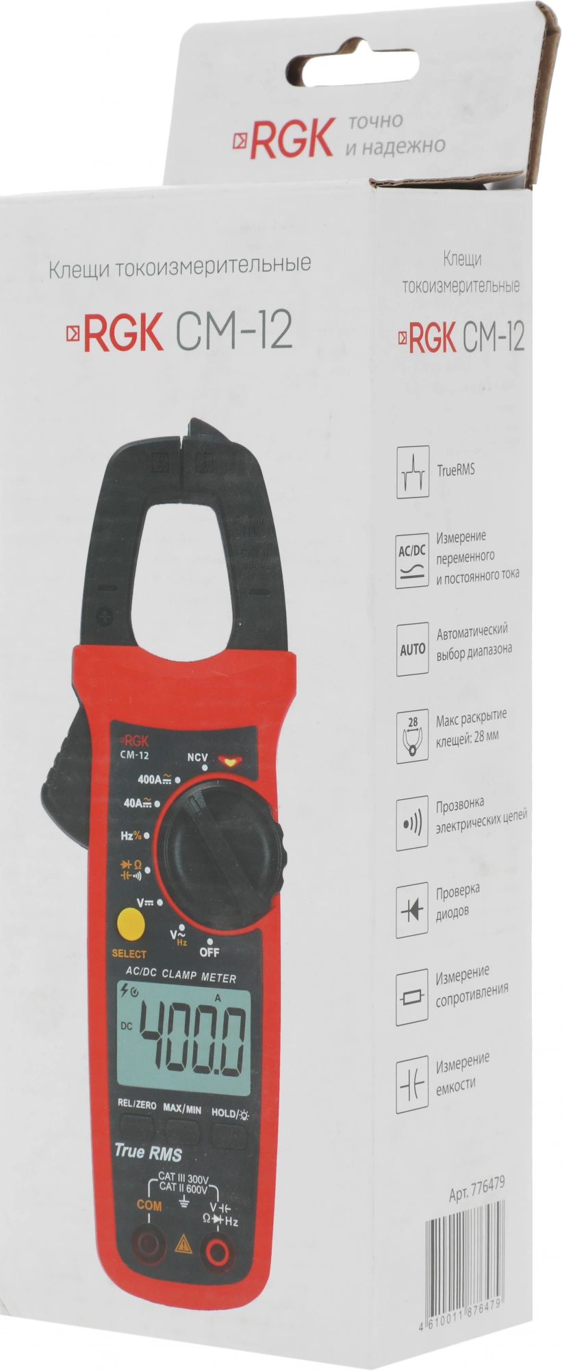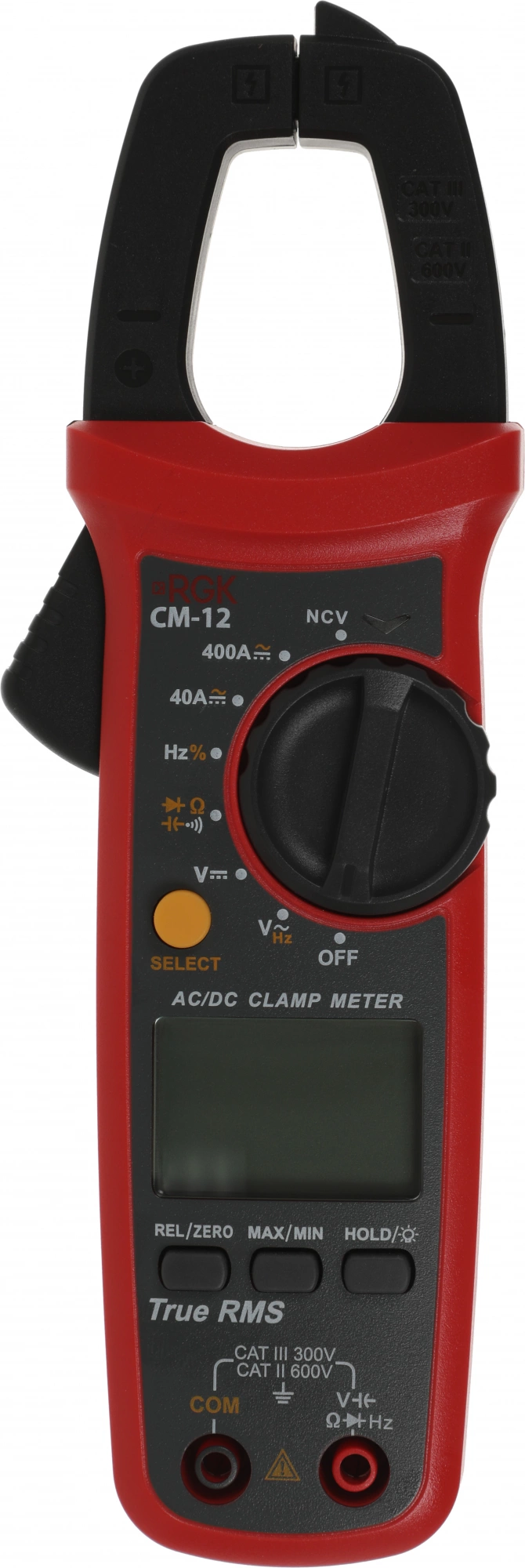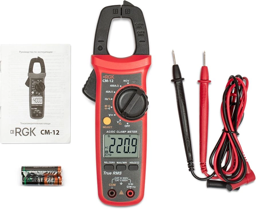 Клещи токоизмерительные RGK CM-12 цифр. измер.ток:переменный/постоянный красный/черный (776479)
