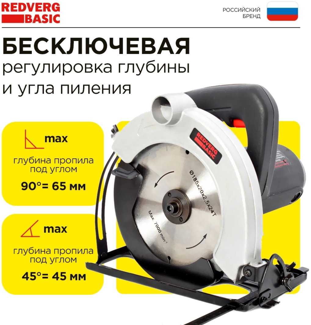 Циркулярная пила (дисковая) RedVerg CS65 Basic 1300Вт (ручная) D диска.:180мм (CS65)