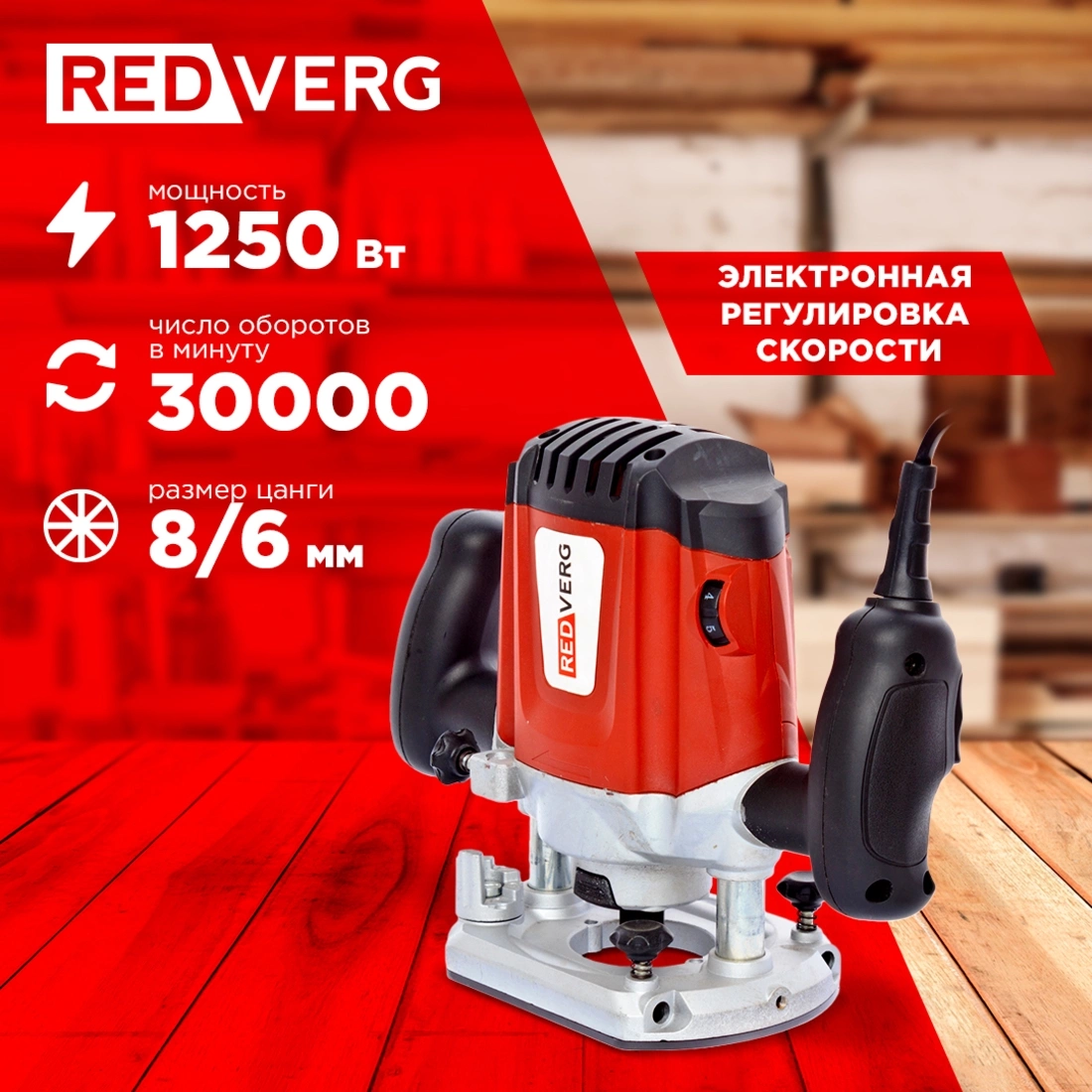 Фрезер RedVerg RD-ER125 1250Вт 30000об/мин макс.ход:50мм