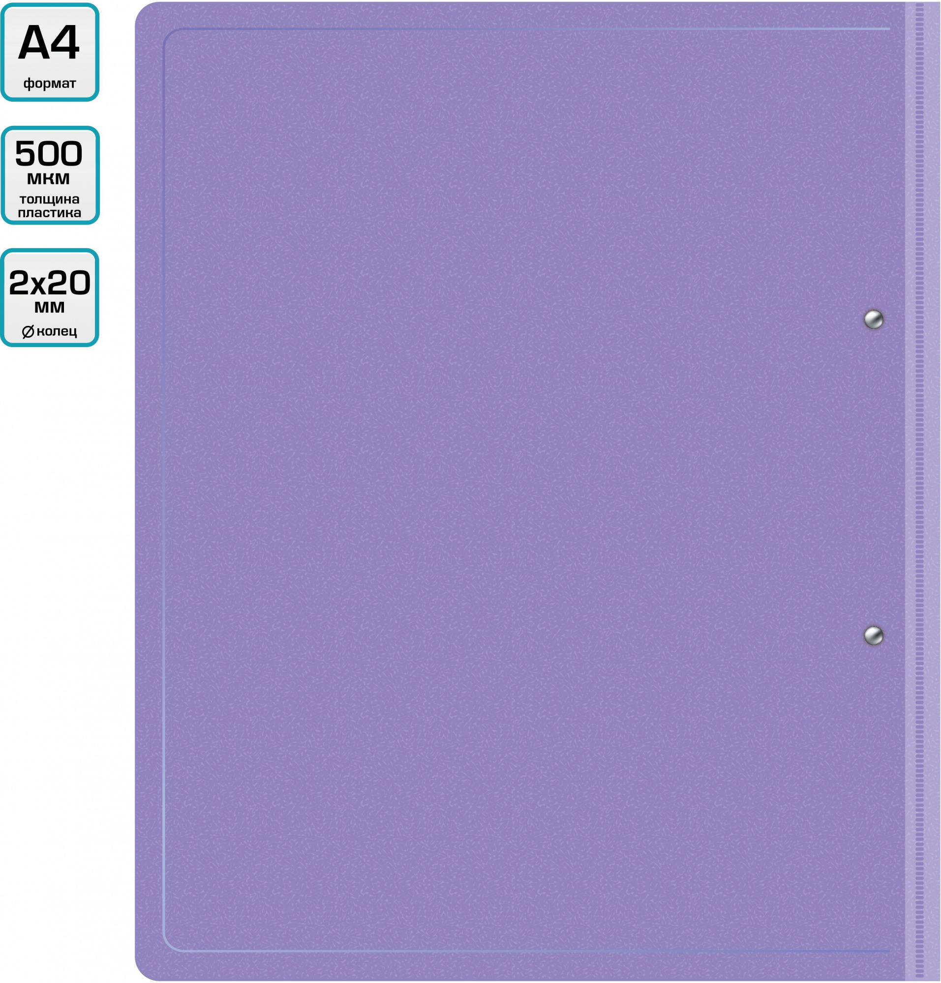 Папка на 2-х кольцах Бюрократ Pastel PAST0812/2RVIO A4 пластик 0.5мм кор.27мм торц.карм с бум. встав фиолетовый