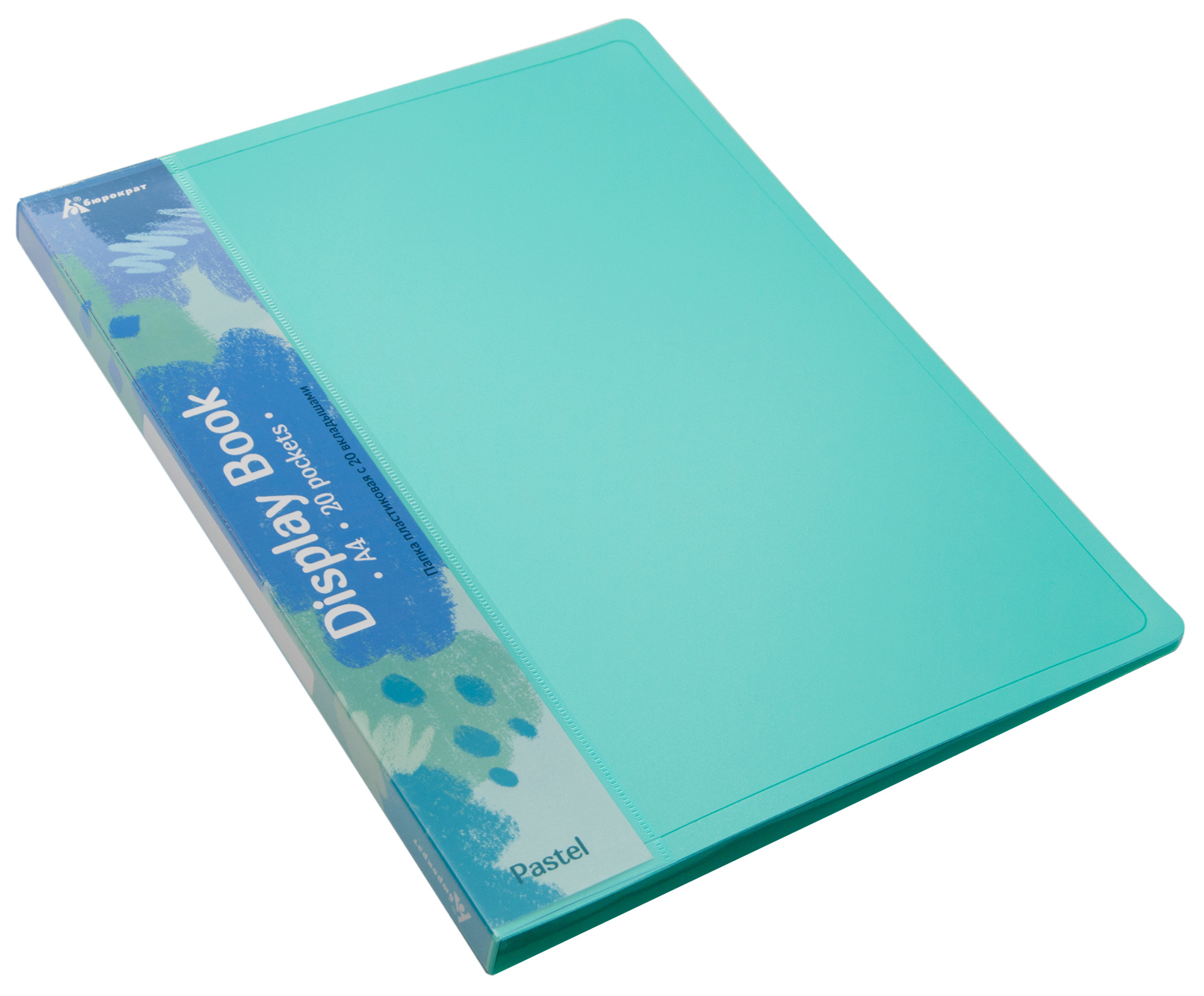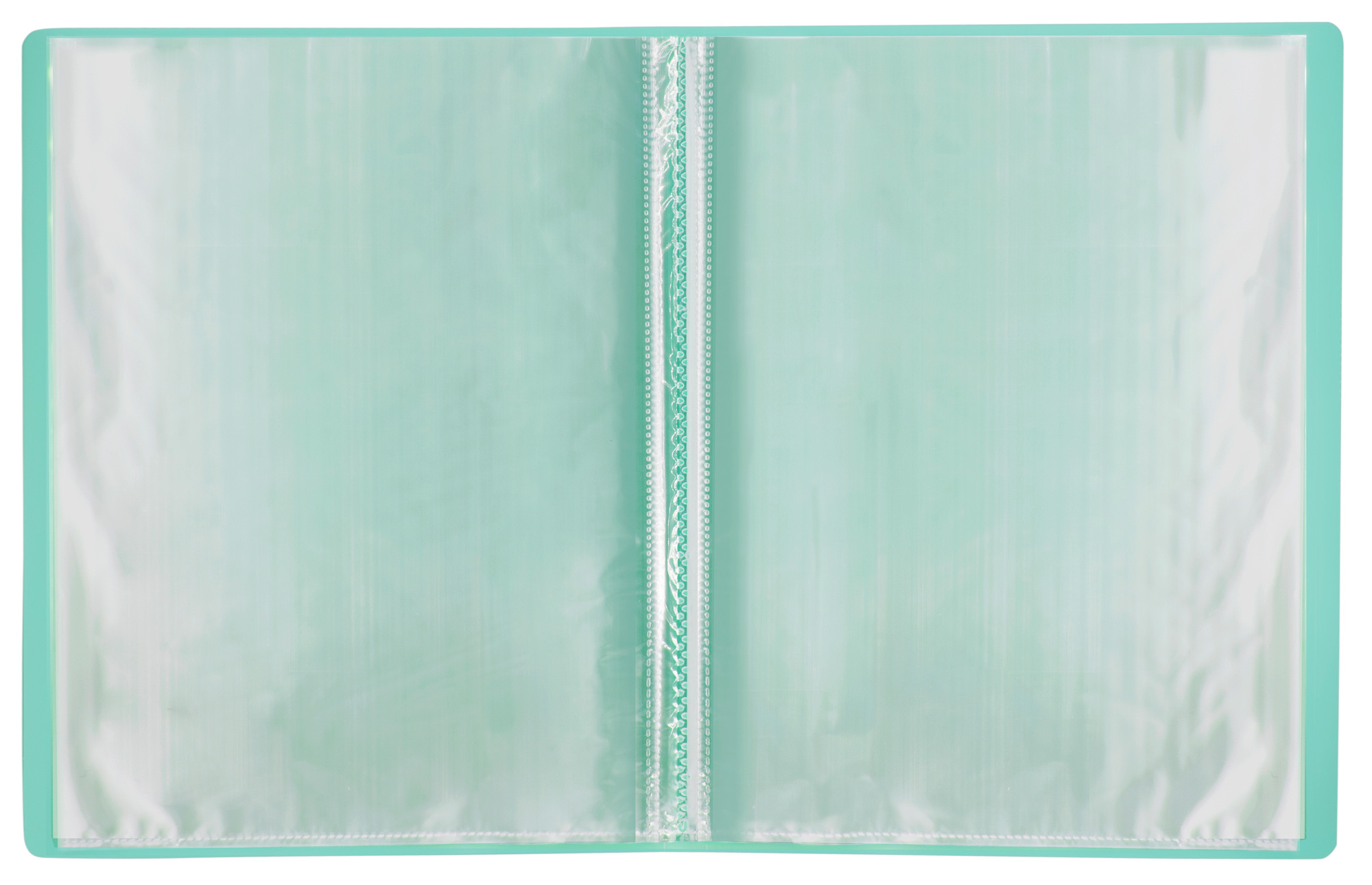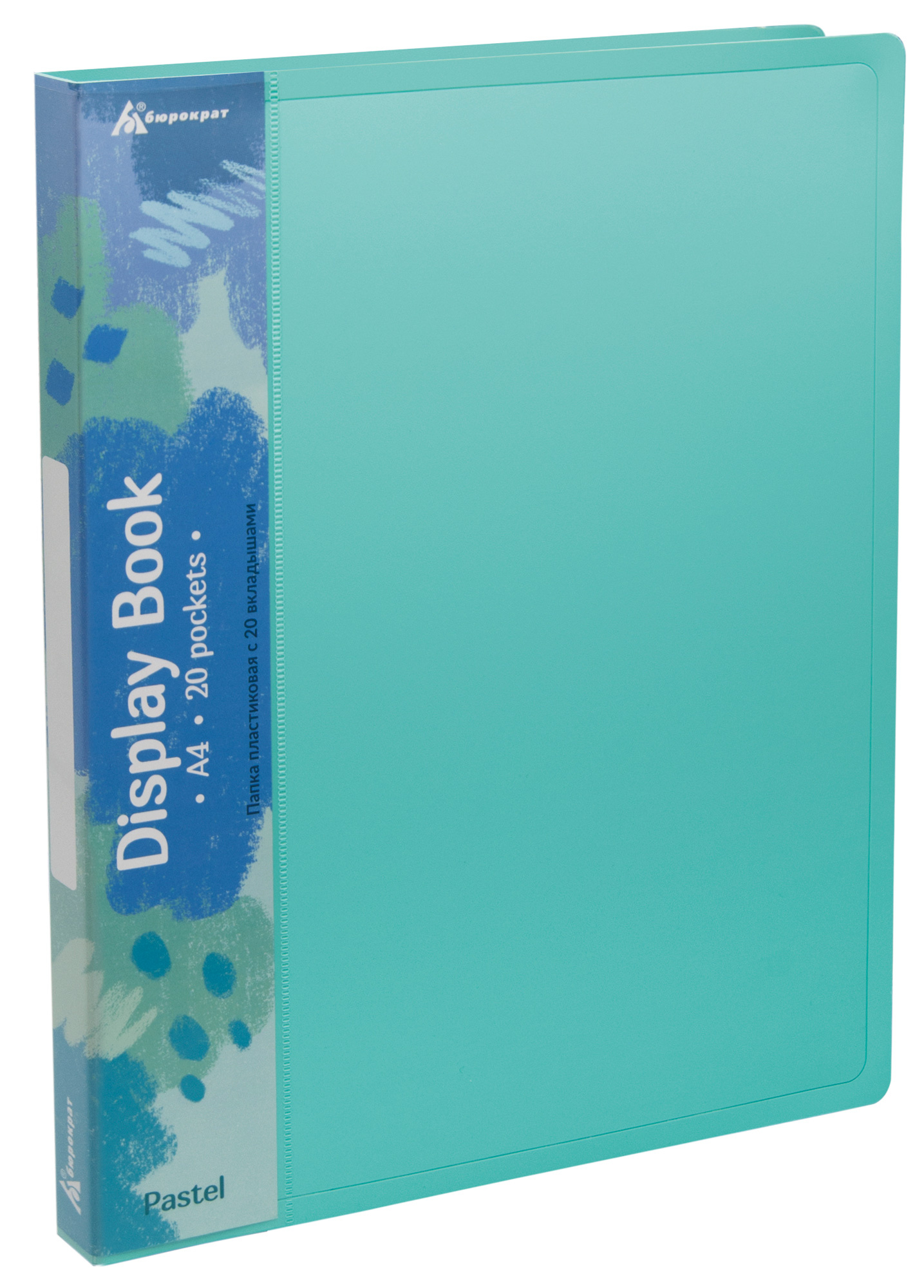 Папка с 20 прозр.вклад. Бюрократ Pastel PAST20GRN A4 пластик 0.5мм торц.карм с бум. встав мятный