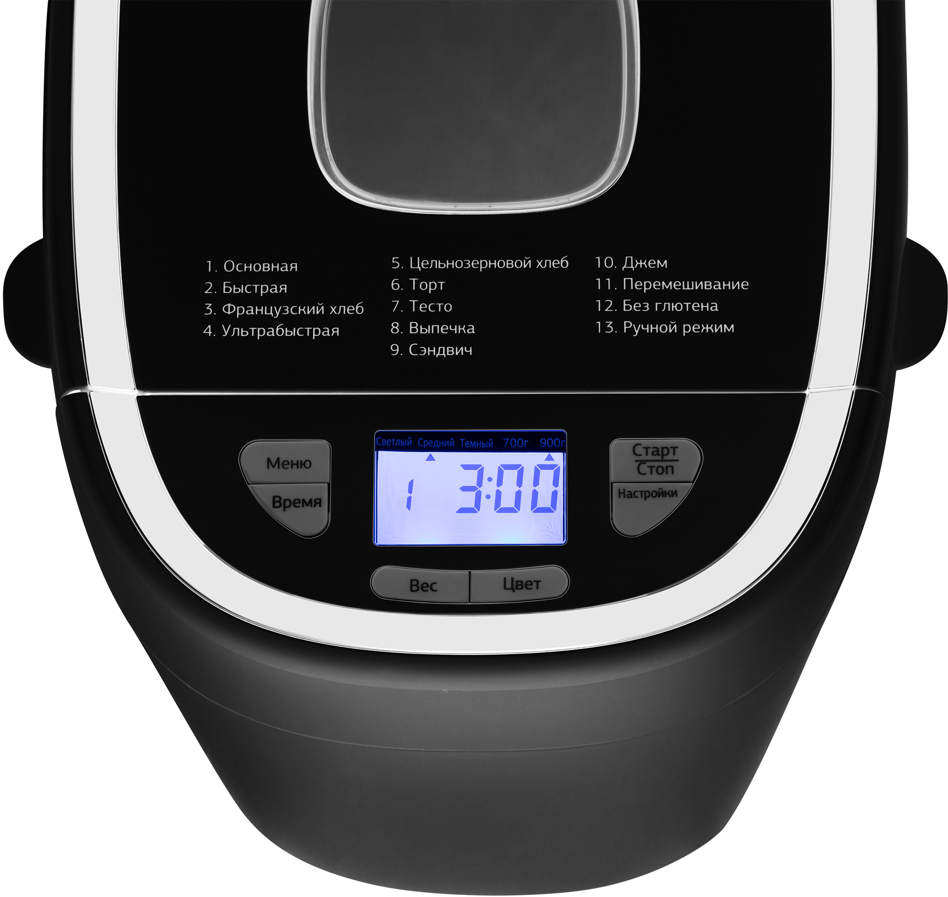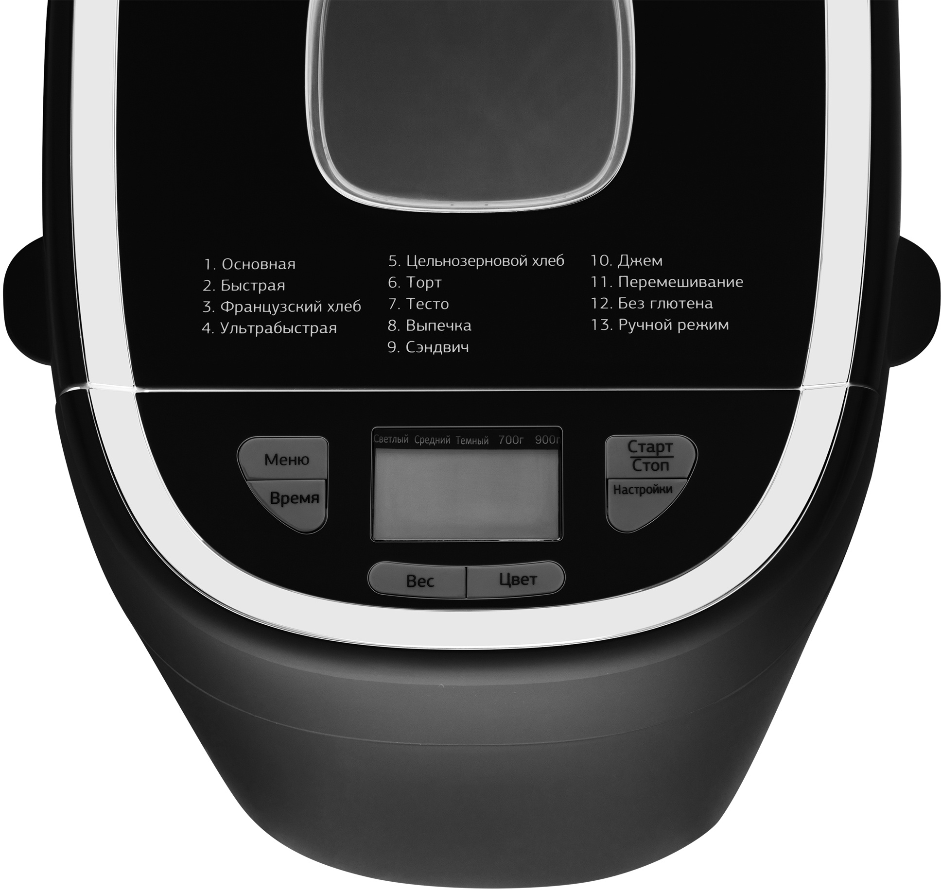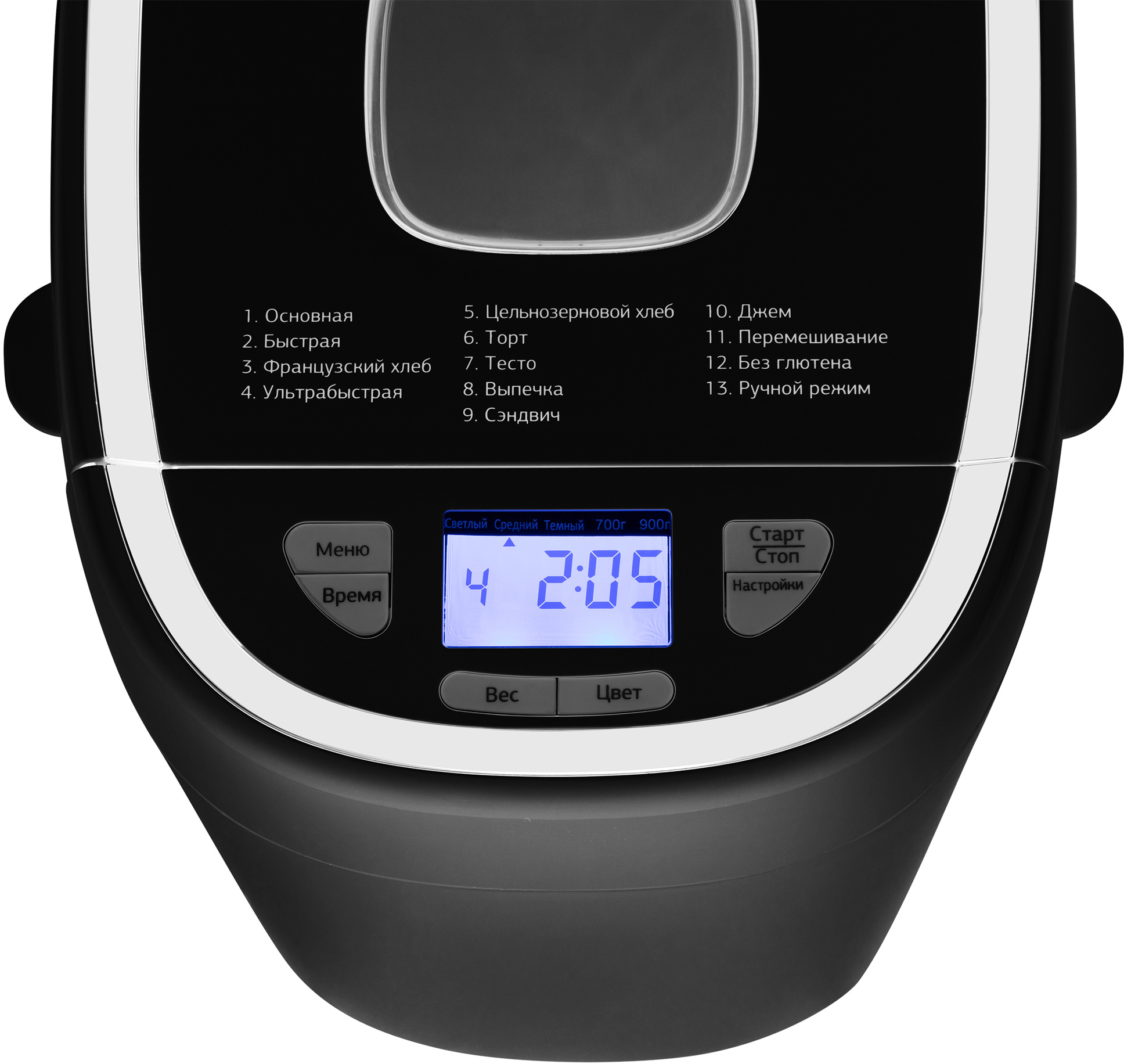 - Функциивыбор цвета корочки, поддержание температуры, регулировка веса выпечки