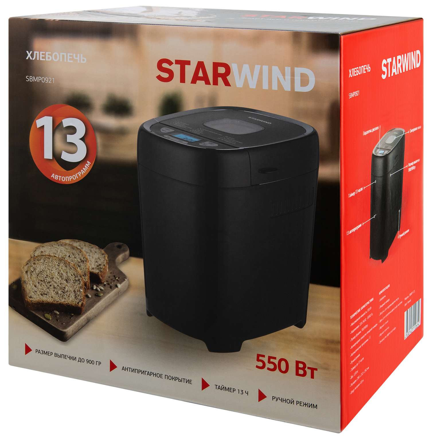 Хлебопечь Starwind SBMP0921 550Вт черный