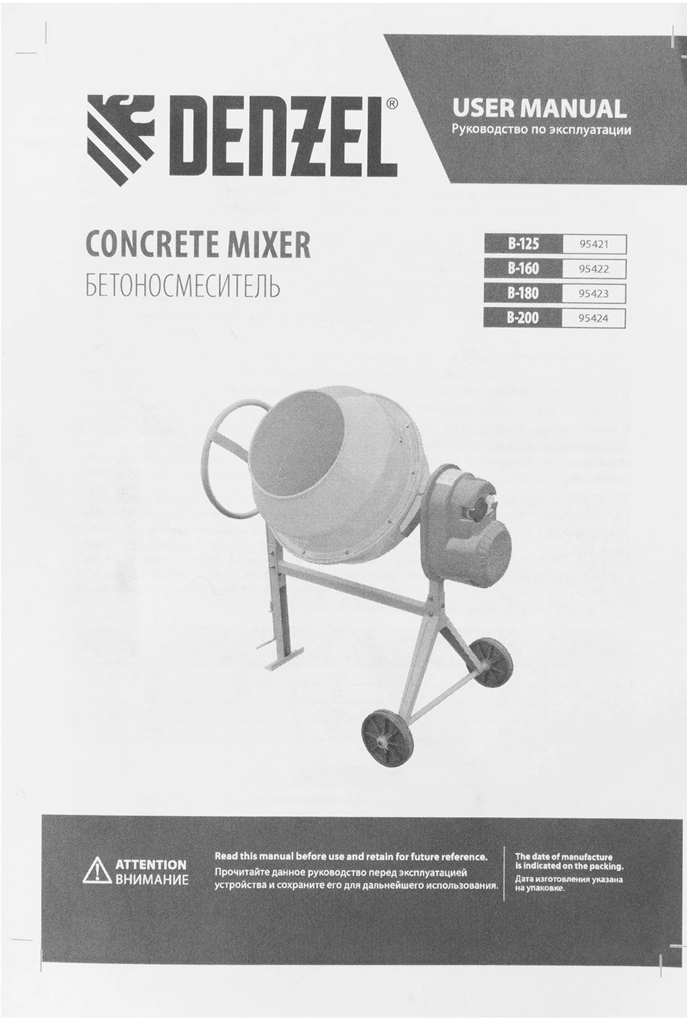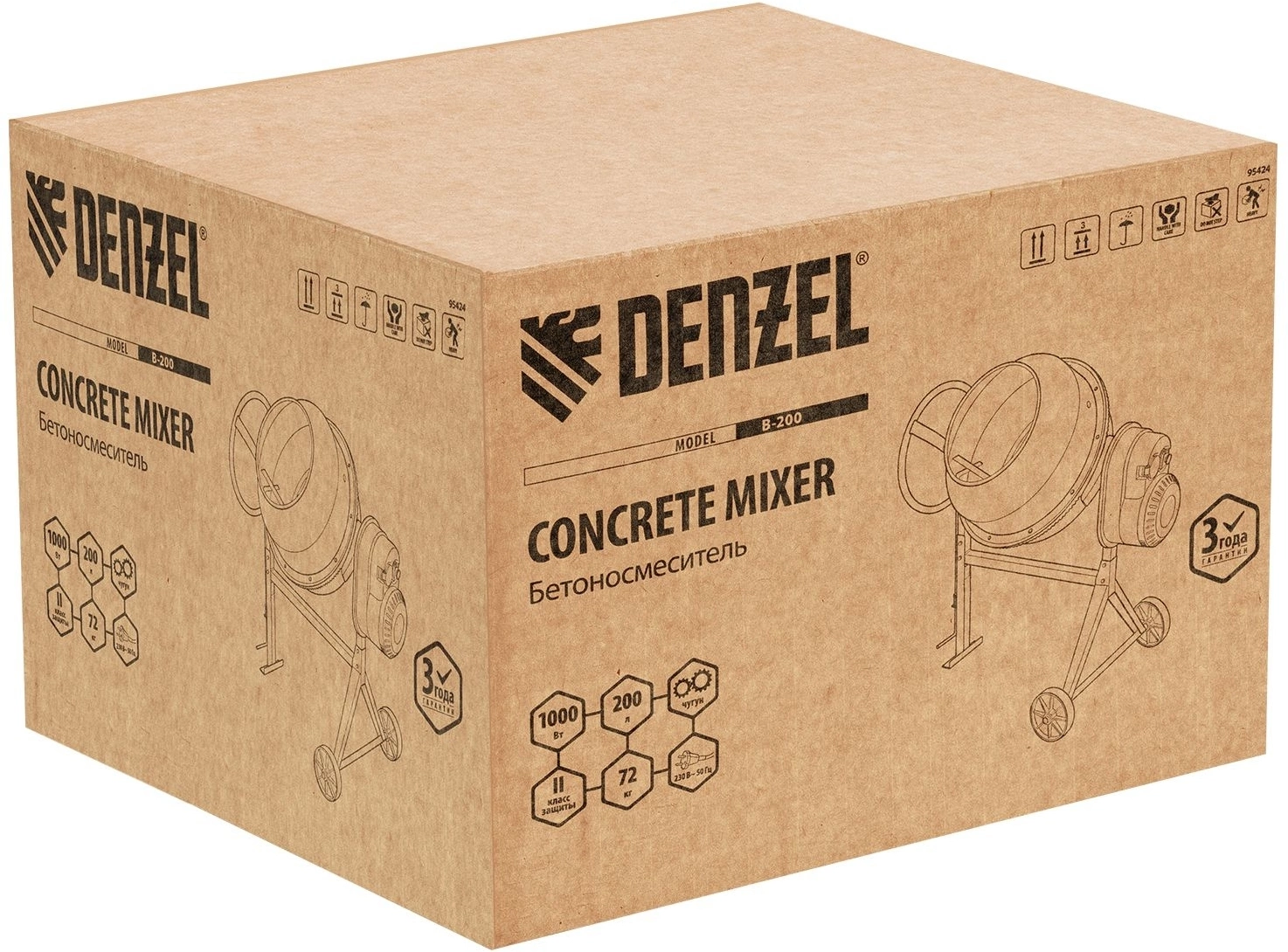 Бетономешалка Denzel B-200 электрич. бар.:200л г.р.:110л 1000Вт (95424)