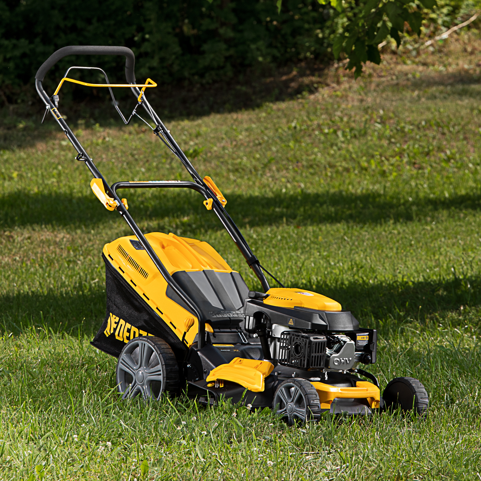 - ОсобенностиИнновационный двигатель Denzel, функция быстрой очистки Quick Clean, виброгасящее покрытие рукоятки, быстрозажимные эксцентриковые фиксаторы, комбинированный травосборник: ткань/пластик, регулировка высоты кошения одним рычагом, широкие колёса ECO-FRIENDLY не повреждающие газон.