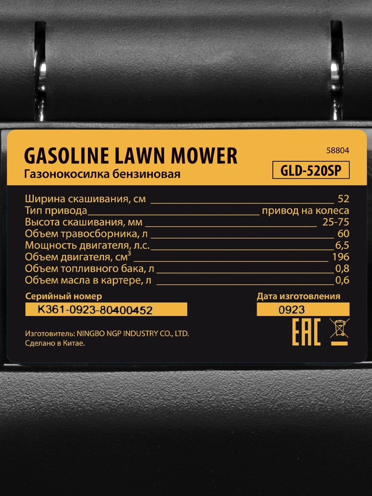 Газонокосилка роторная Denzel GLD-520SP (58804)