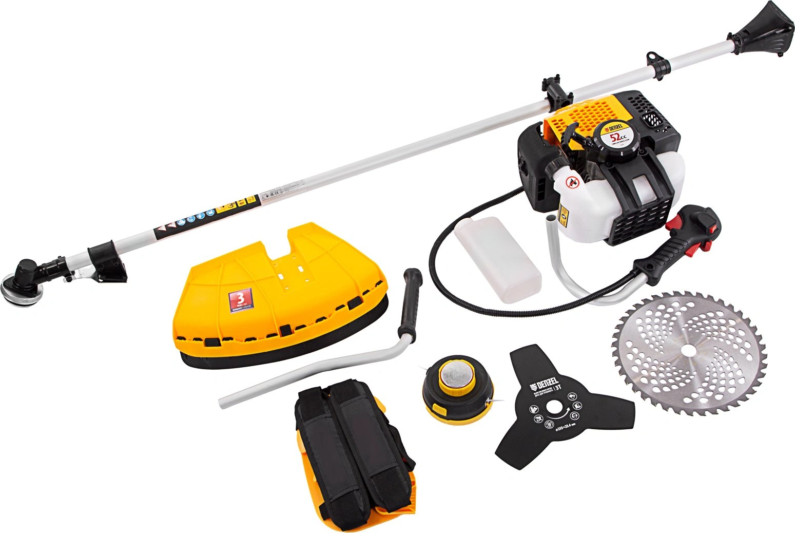 - Комплект поставкиТриммер бензиновый, катушка, нож трехлопастной 3Т, пильный диск 40Т, двухплечевая подвесная система с защитой бедра, дозатор для приготовления смеси, набор крепежа, набор инструментов, руководство по эксплуатации с гарантийным талоном.