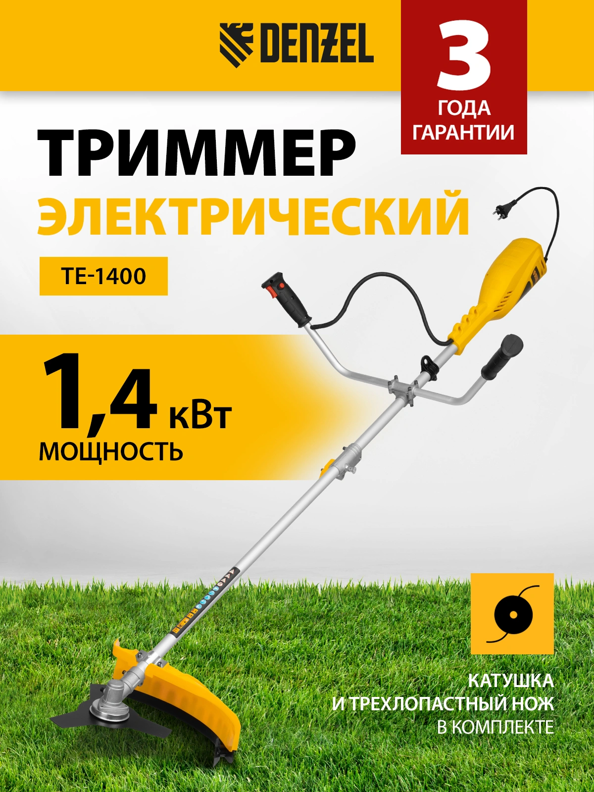 Триммер электрический Denzel TE-1400 1400Вт разбор.штан. реж.эл.:леска/нож