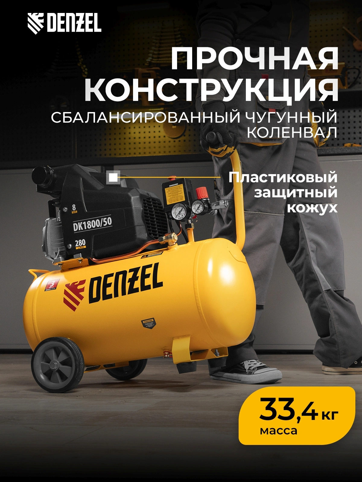 Компрессор поршневой Denzel DK1800/50,Х-PRO масляный 280л/мин 50л 1800Вт желтый/черный